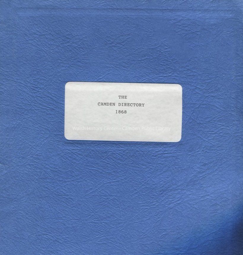 Camden telephone directory. Includes advertising. Alphabetized by last name or business name. Includes listing of streets, roads, courts and lanes as well as blocks and buildings; halls; offices; shipyards; and wharves.