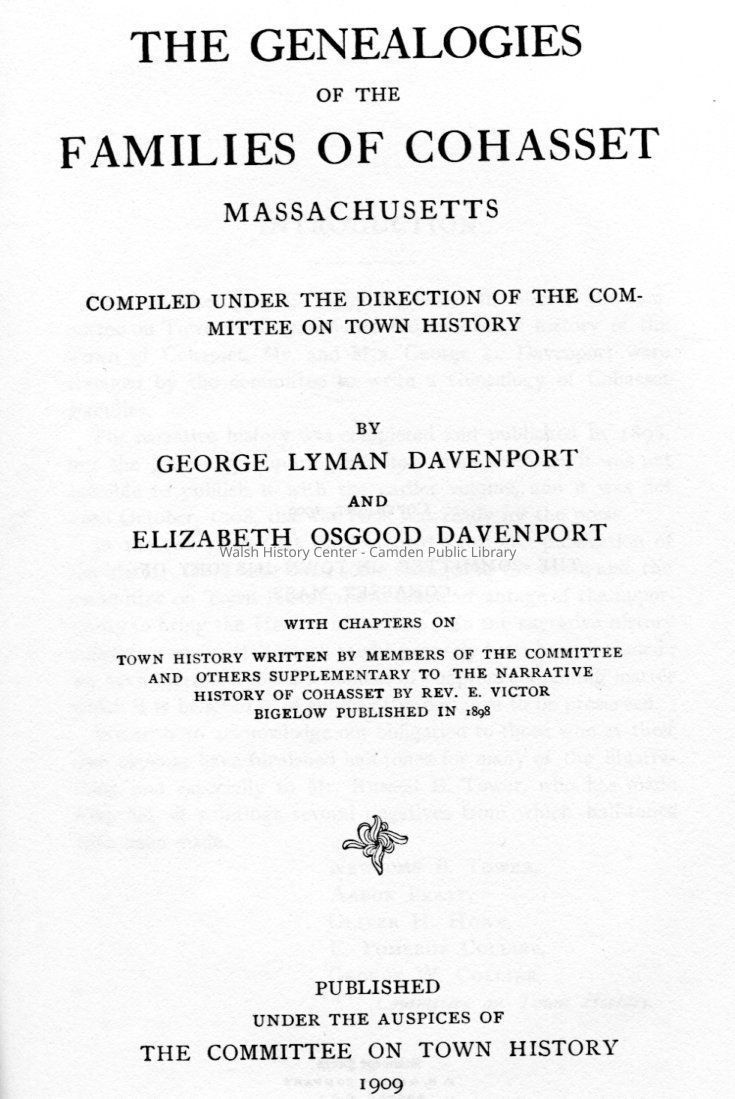 The Genealogies of the Families of Cohasset, MassachusettsEntry/Object ID