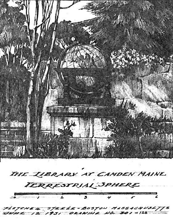 Fletcher Steele drawing of the terrestrial sphere at the Camden Amphitheatre.