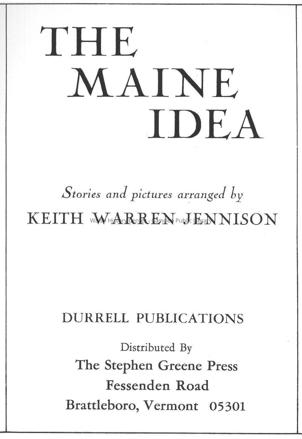 A short Maine tale with corresponding photographs.Collection