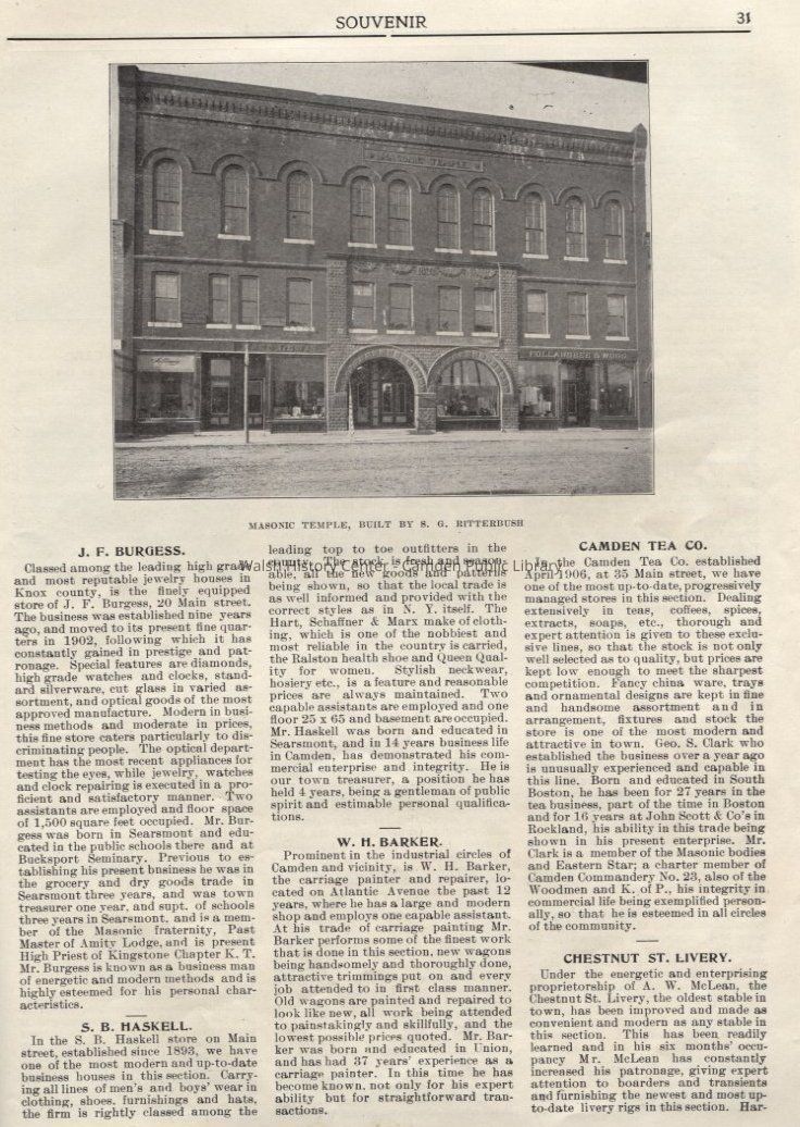 The Maine Magazine, Special Edition, Camden, Rockland and Environs, 1907. A thorough description of every business in town, as well as prominent citizens and scenic locations.Collection