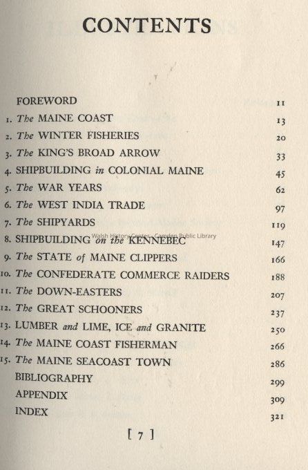 History of three centuries of shipbuilding and seafaring in Maine.