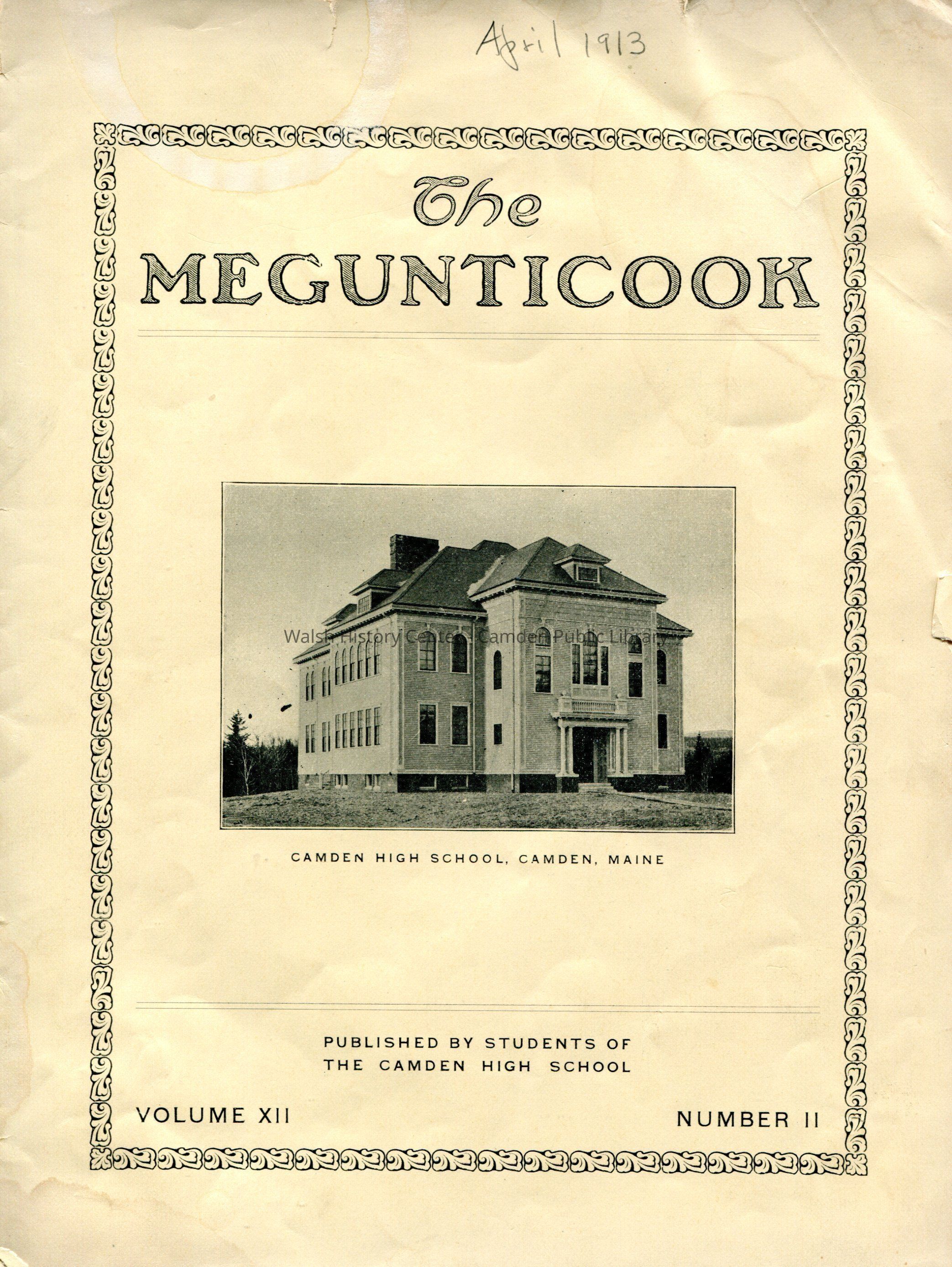 Camden High School publication. April 1913. Vol. 12, No. 2. Includes advertisers, editorials and student articles, alumni notes, and athletics. Includes a photograph of the girl's basketball team.