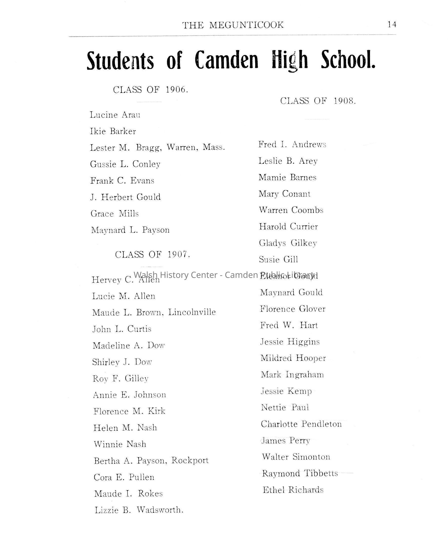 The Megunticook C.H.S. - December 1905Entry/Object ID
