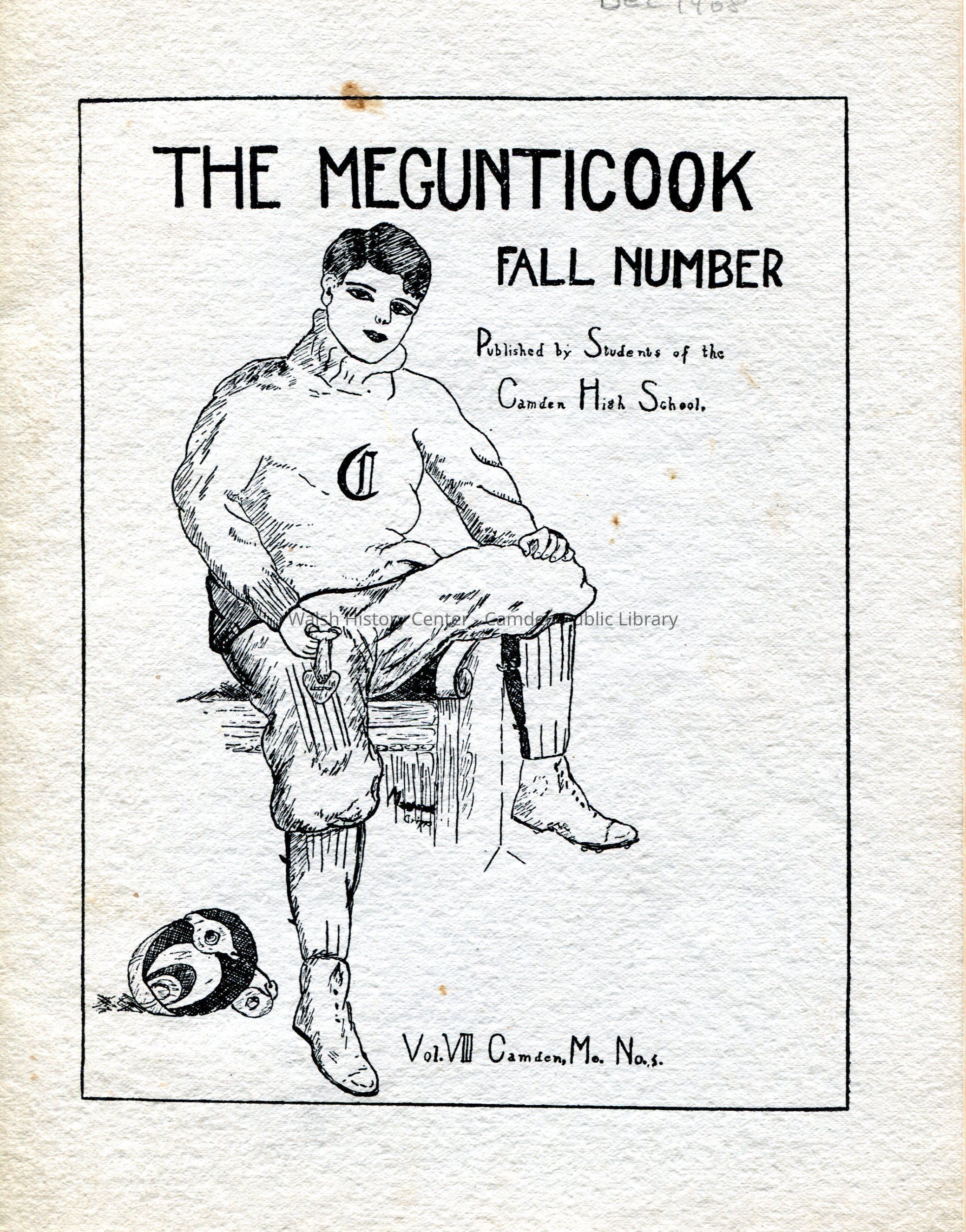 Camden High School publication. December 1908. Vol. 8, No. 1. Includes advertisers, editorial, student articles, alumni notes, athletic notes and a photograph of the football team.