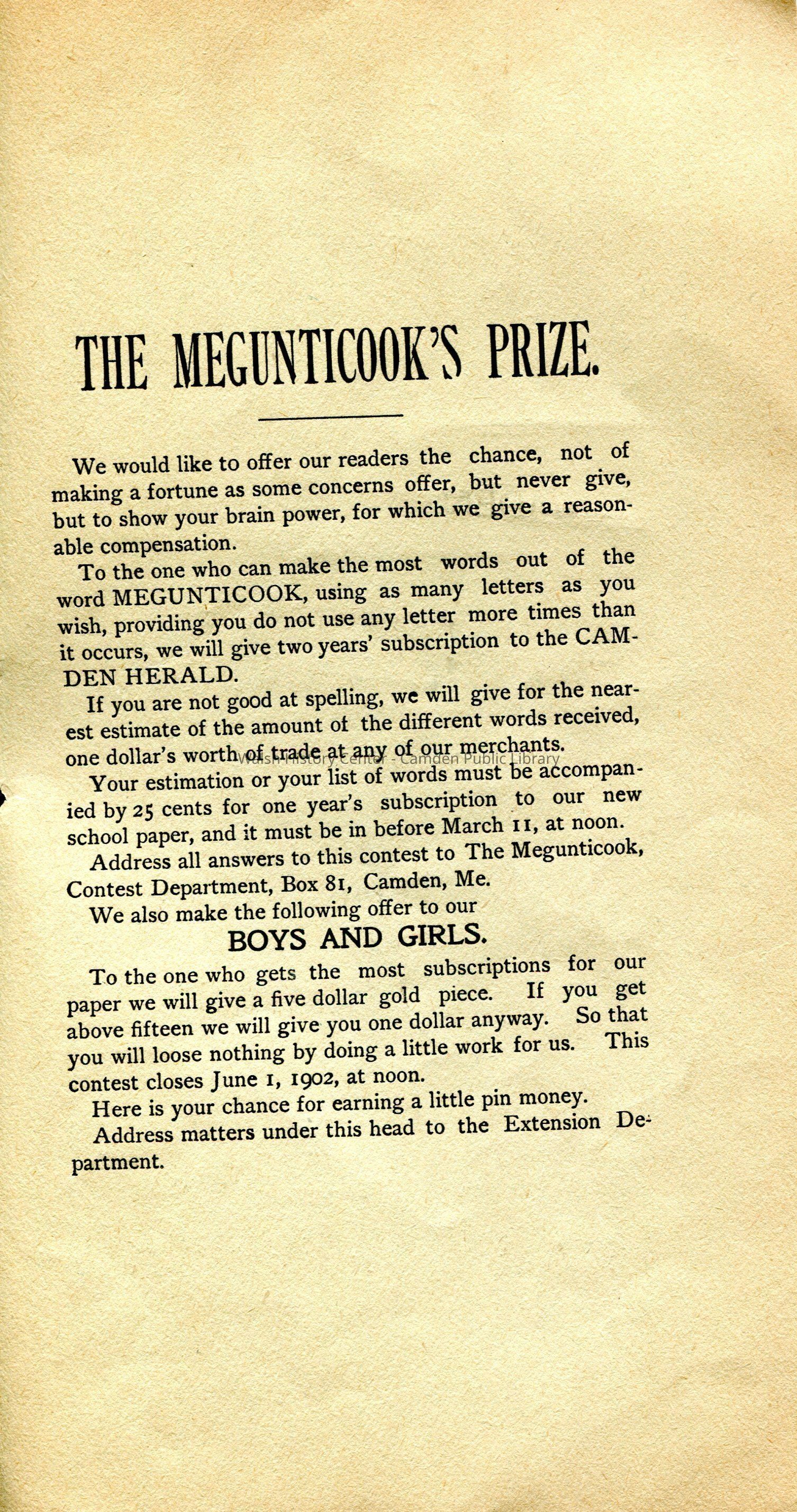 Camden High School monthly publication. February 1, 1902. Vol I. No. 3.