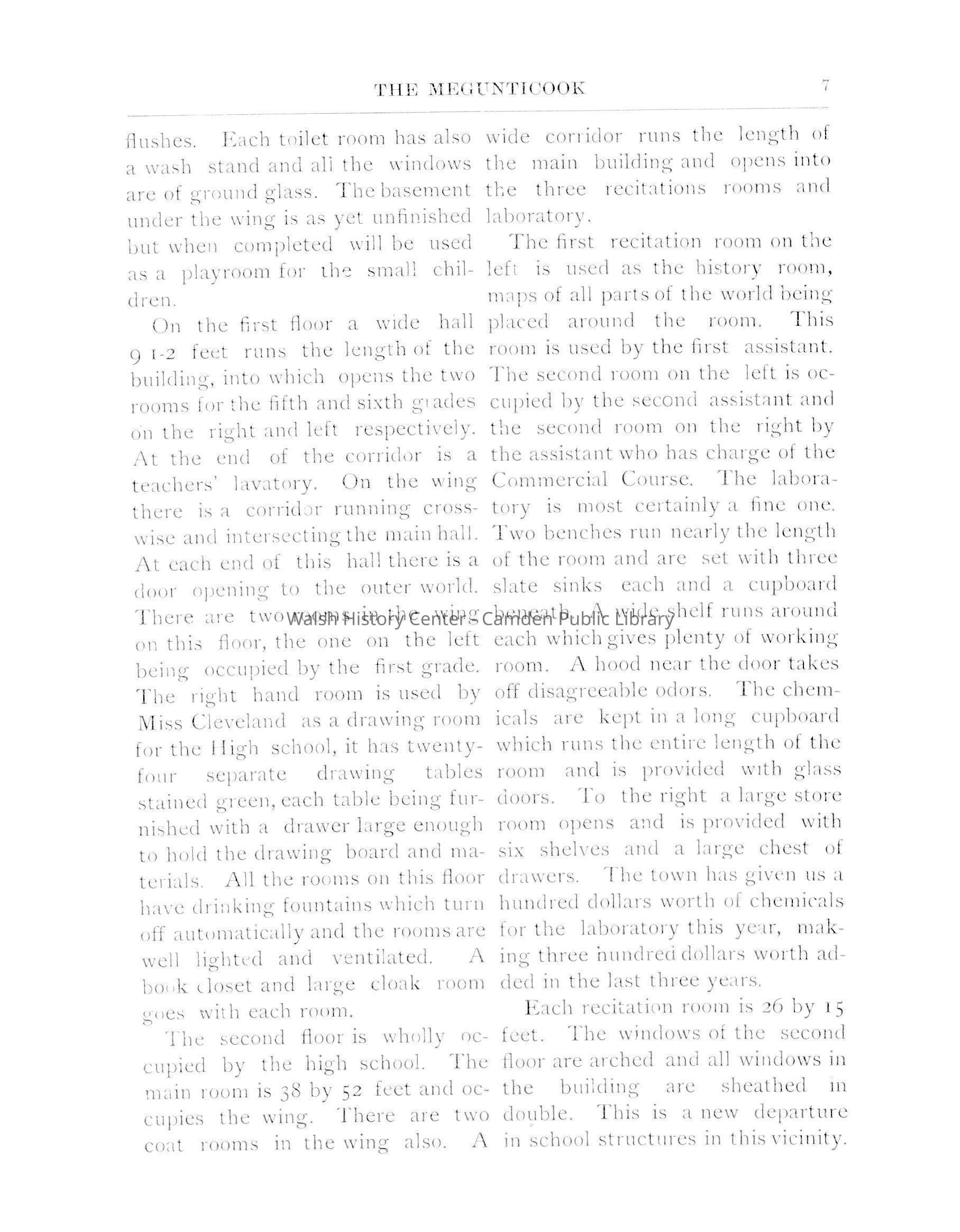 Camden High School publication. March 1905. Vol. 4, No. 2. Includes advertisers, alumni notes from Class of 1902 and 1903, school news, and student writings. Includes a student essay on the new school house on Knowlton Street and the formation of a basketball team.