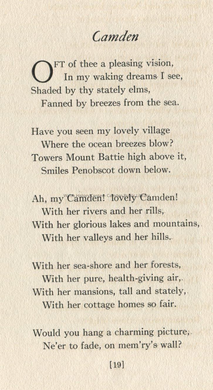 Book of poetry about the Camden area by Elvie Hall (1854-1916) who is buried in Youngtown Cemetery in Lincolnville.