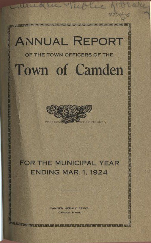 Town of Camden Annual Report 1924 -1933.Entry/Object ID