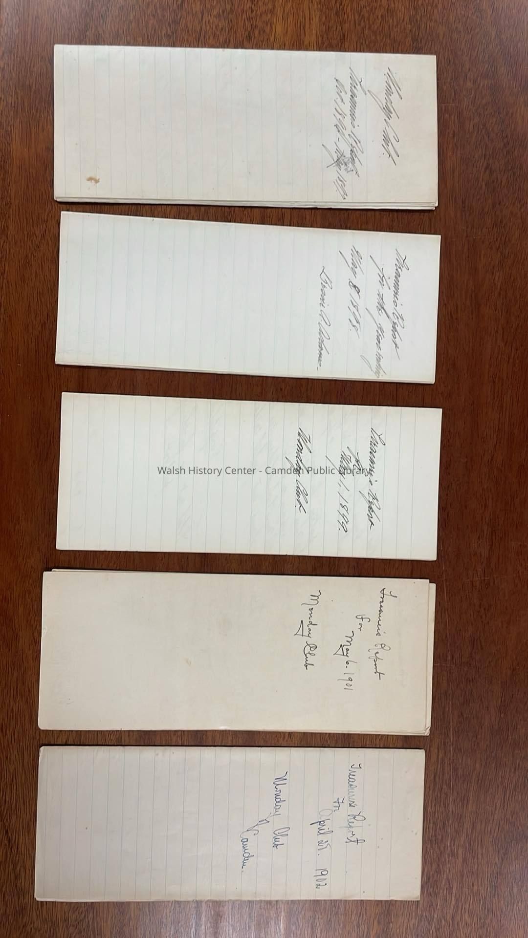 Treasurer's books and report for the Monday Club.