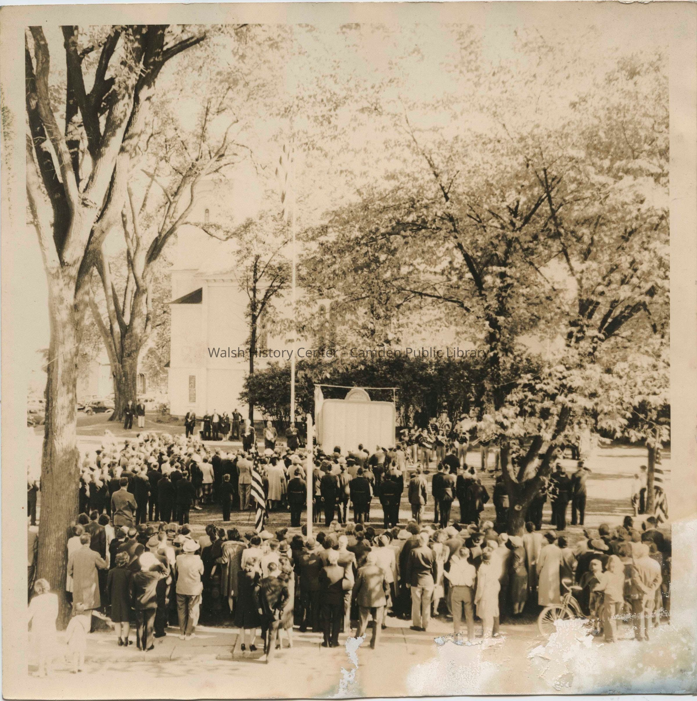 Photograph of the unveiling of the wooden Honor Roll on the Village Green in Camden, Maine.Collection