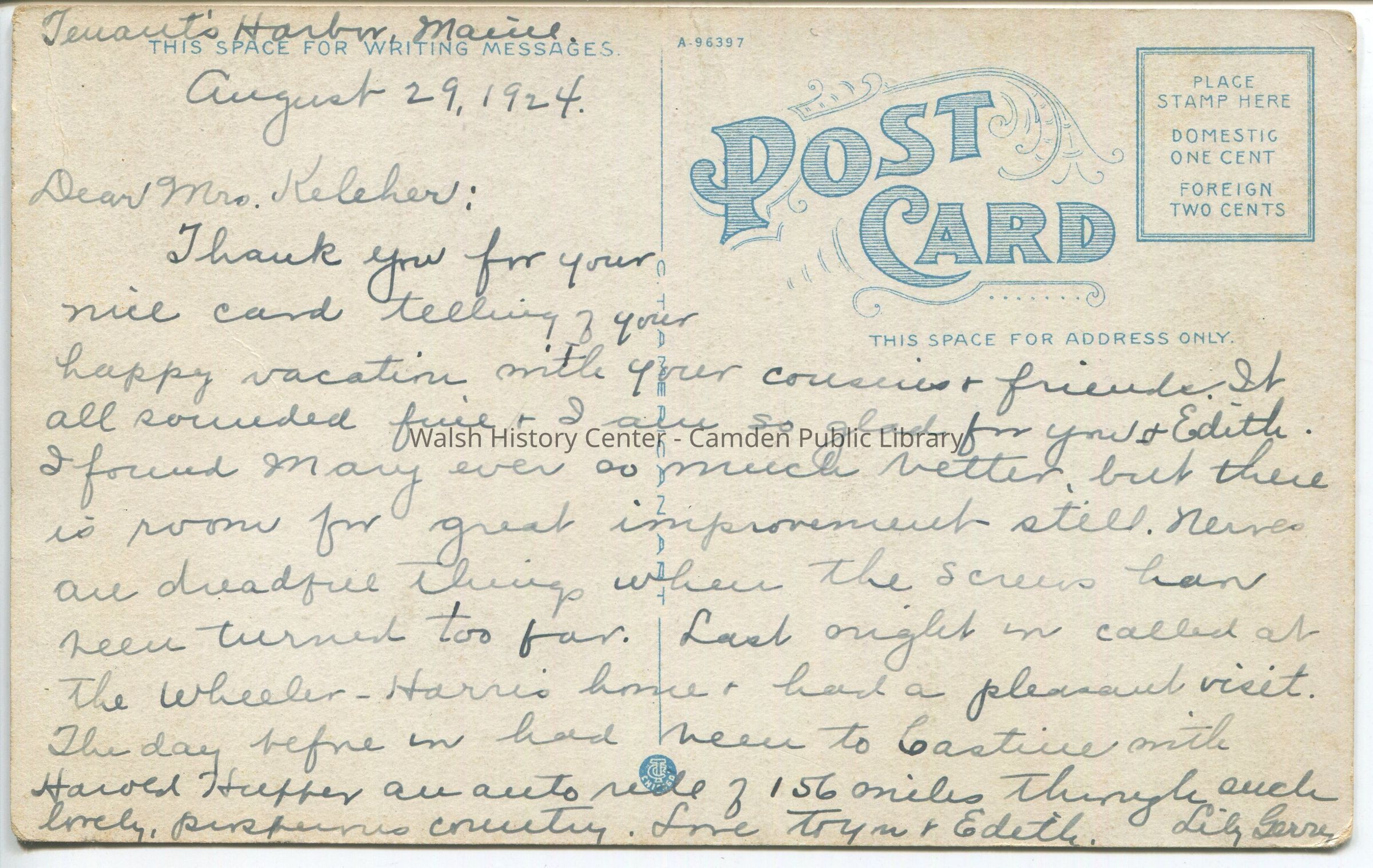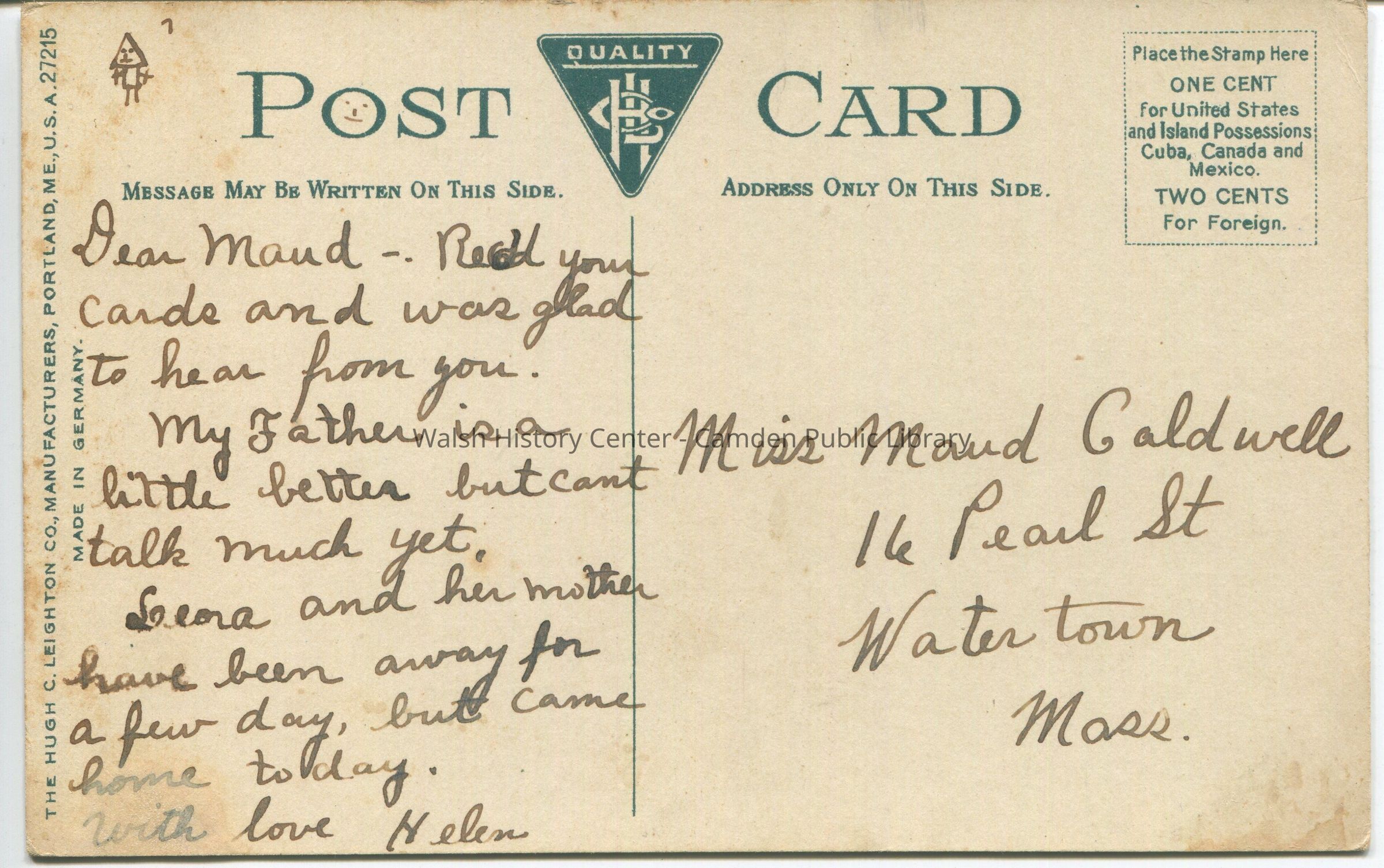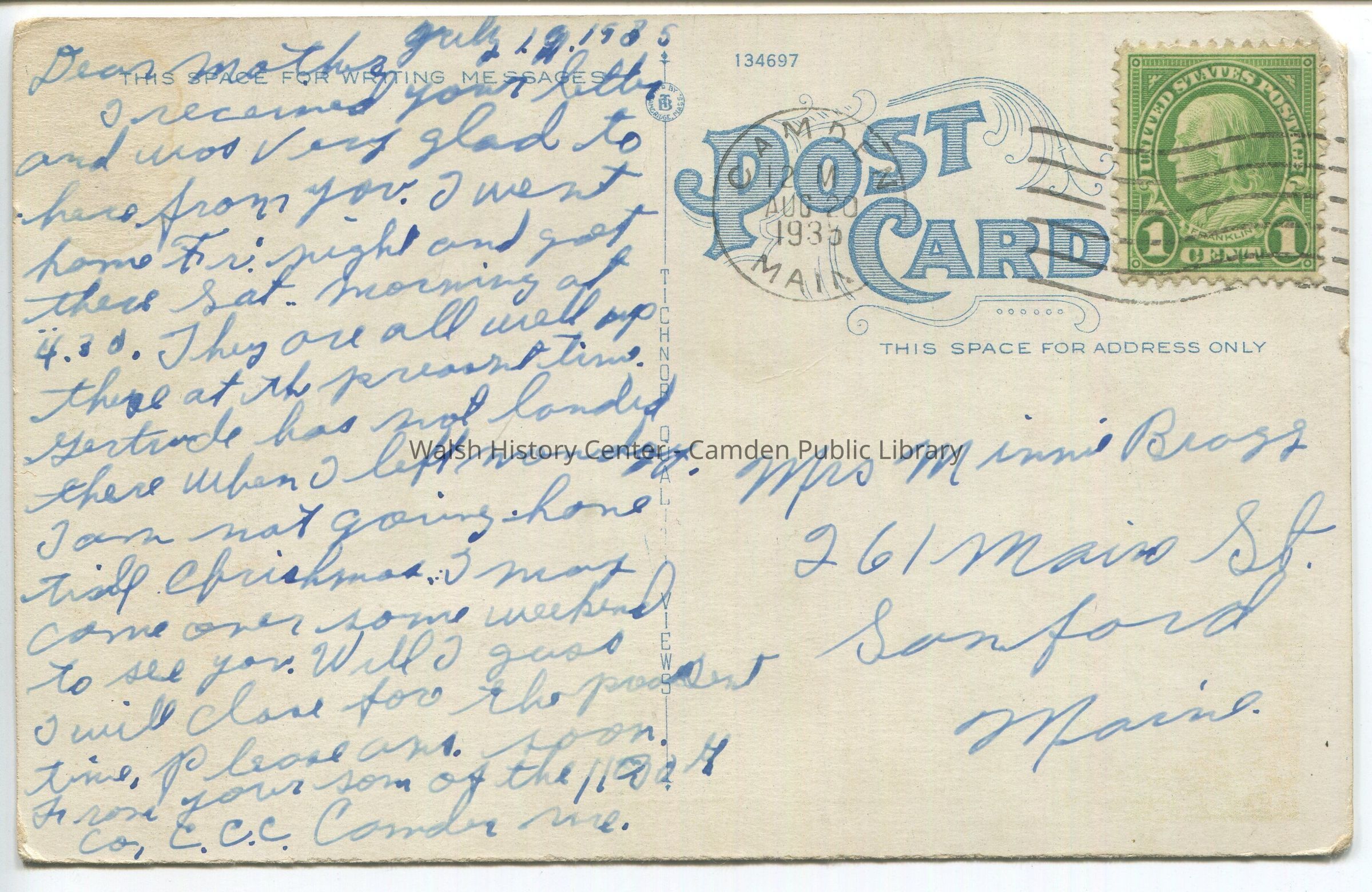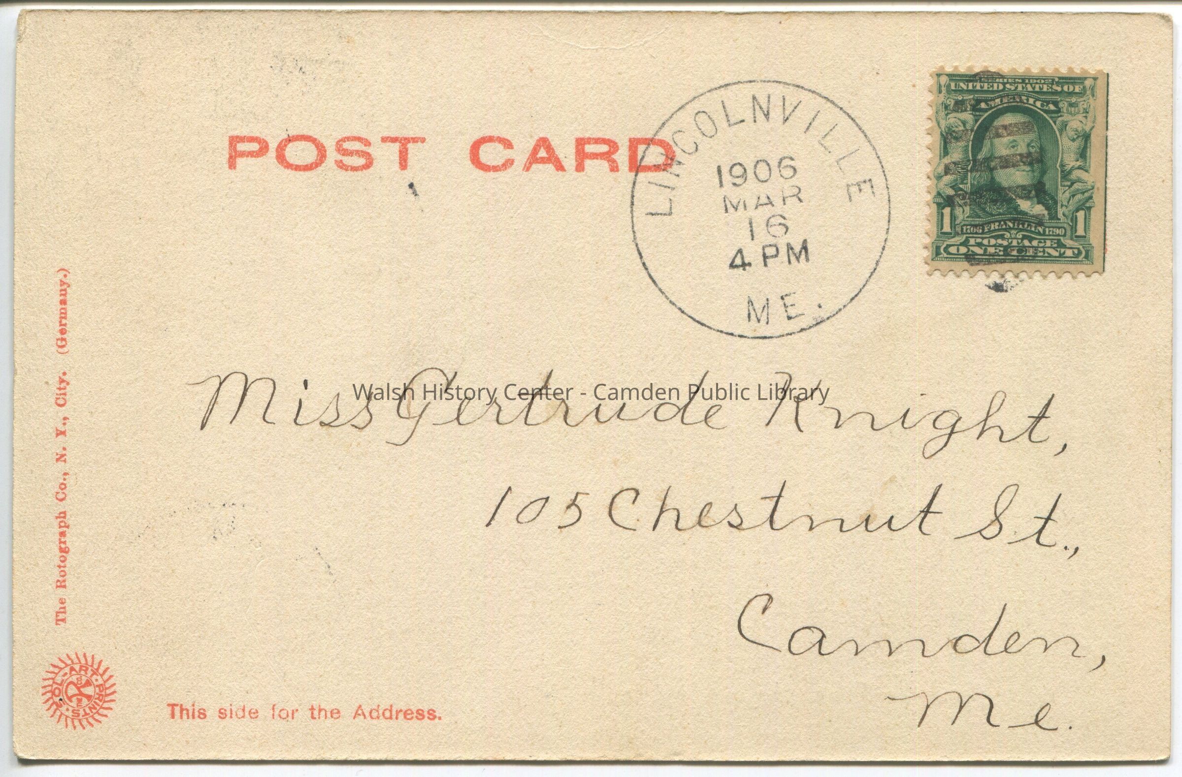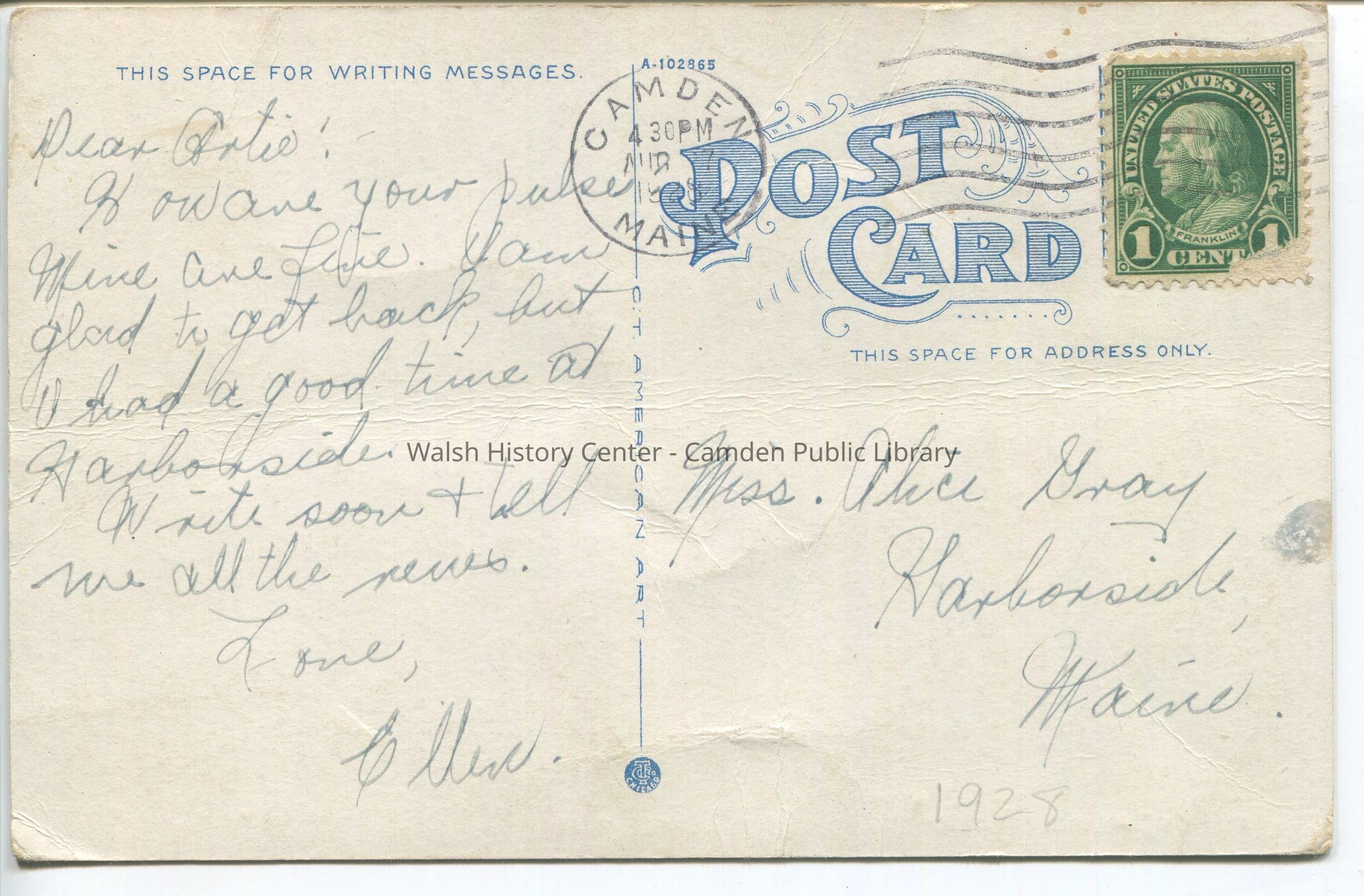 Postcards were loaned for scanning and returned.Collection