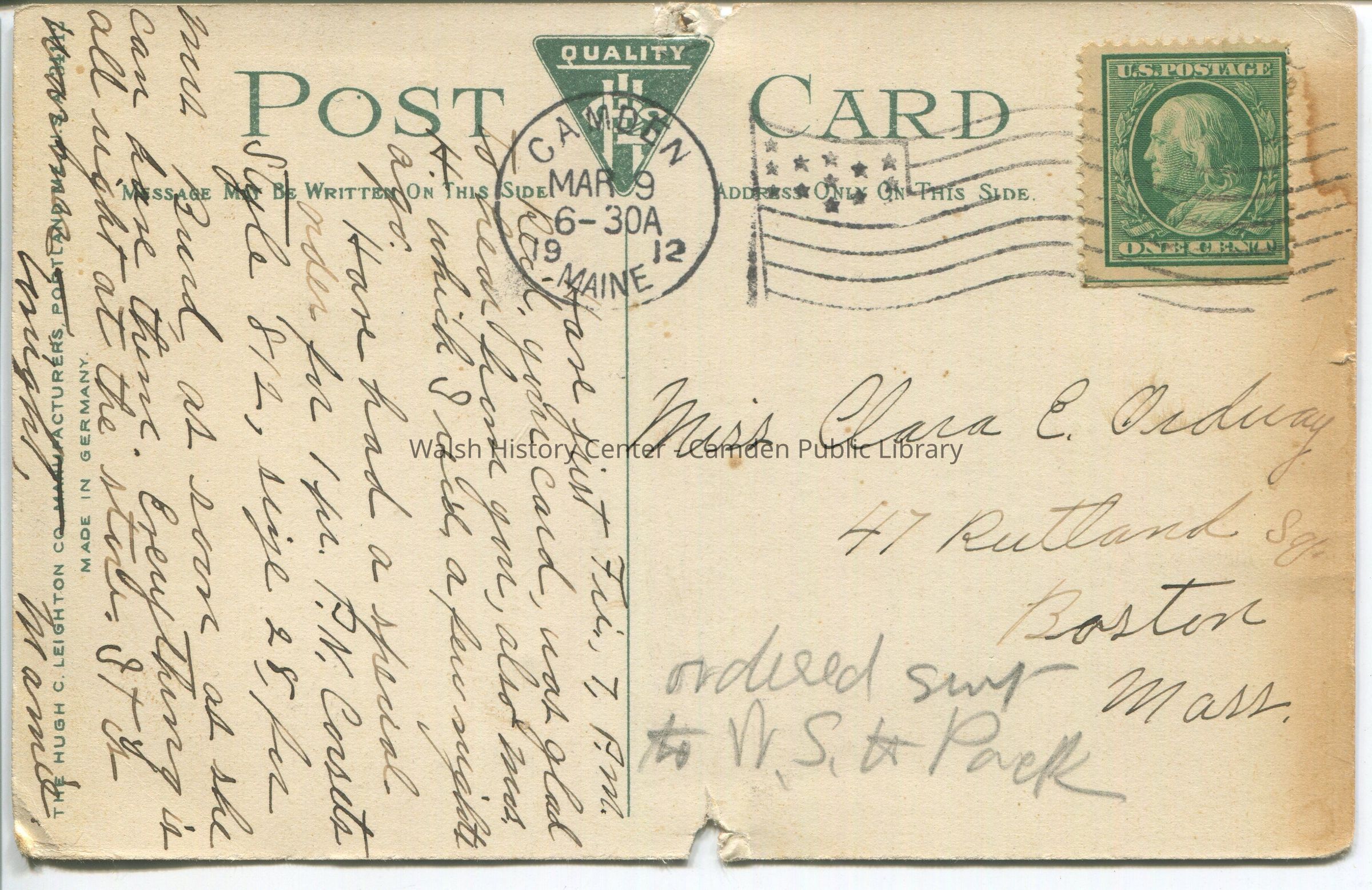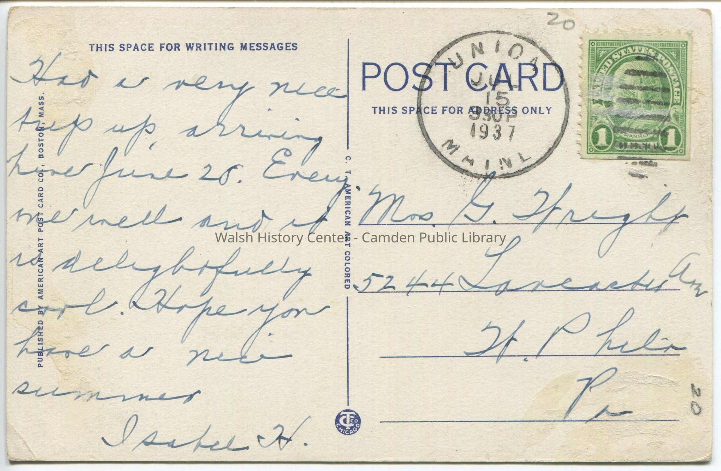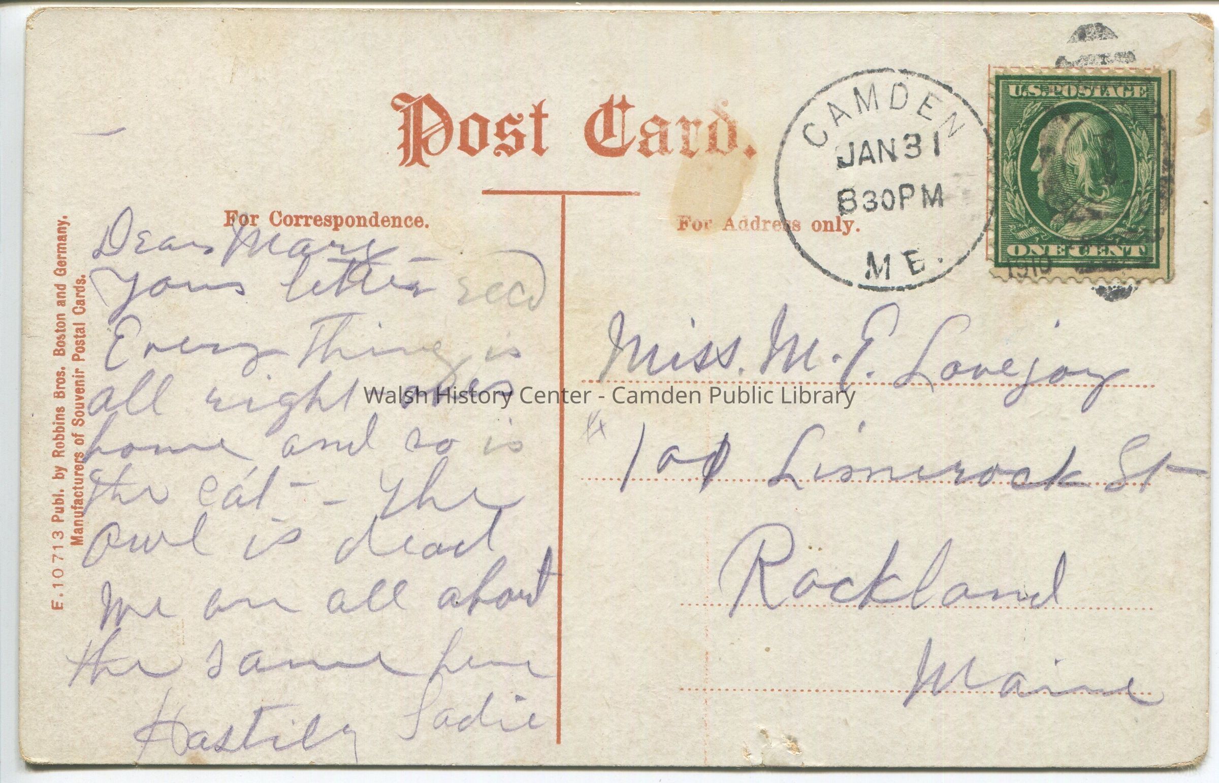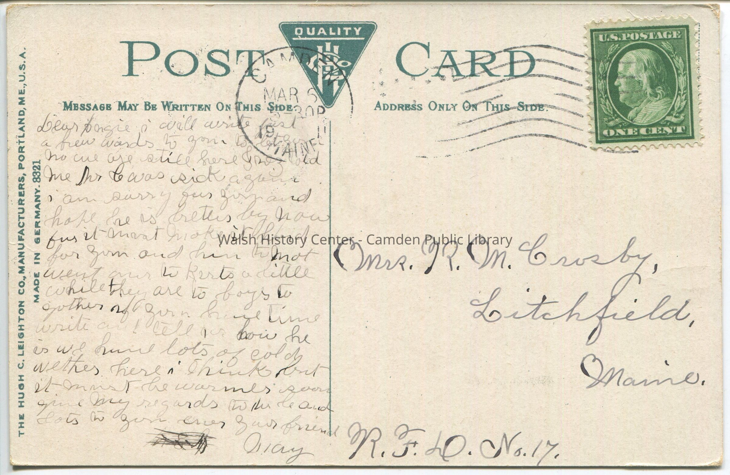 Postcards were loaned for scanning and returned.Collection