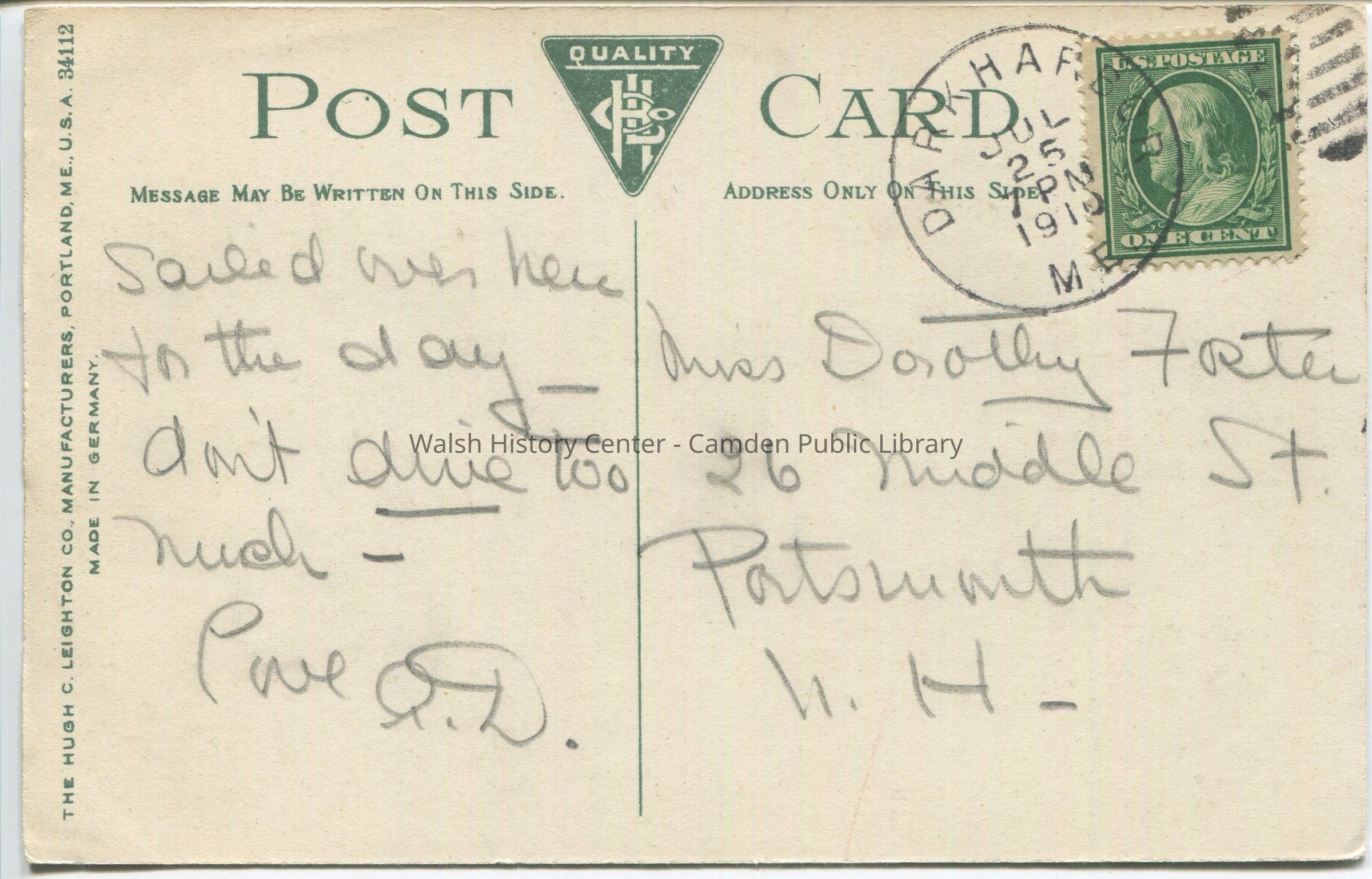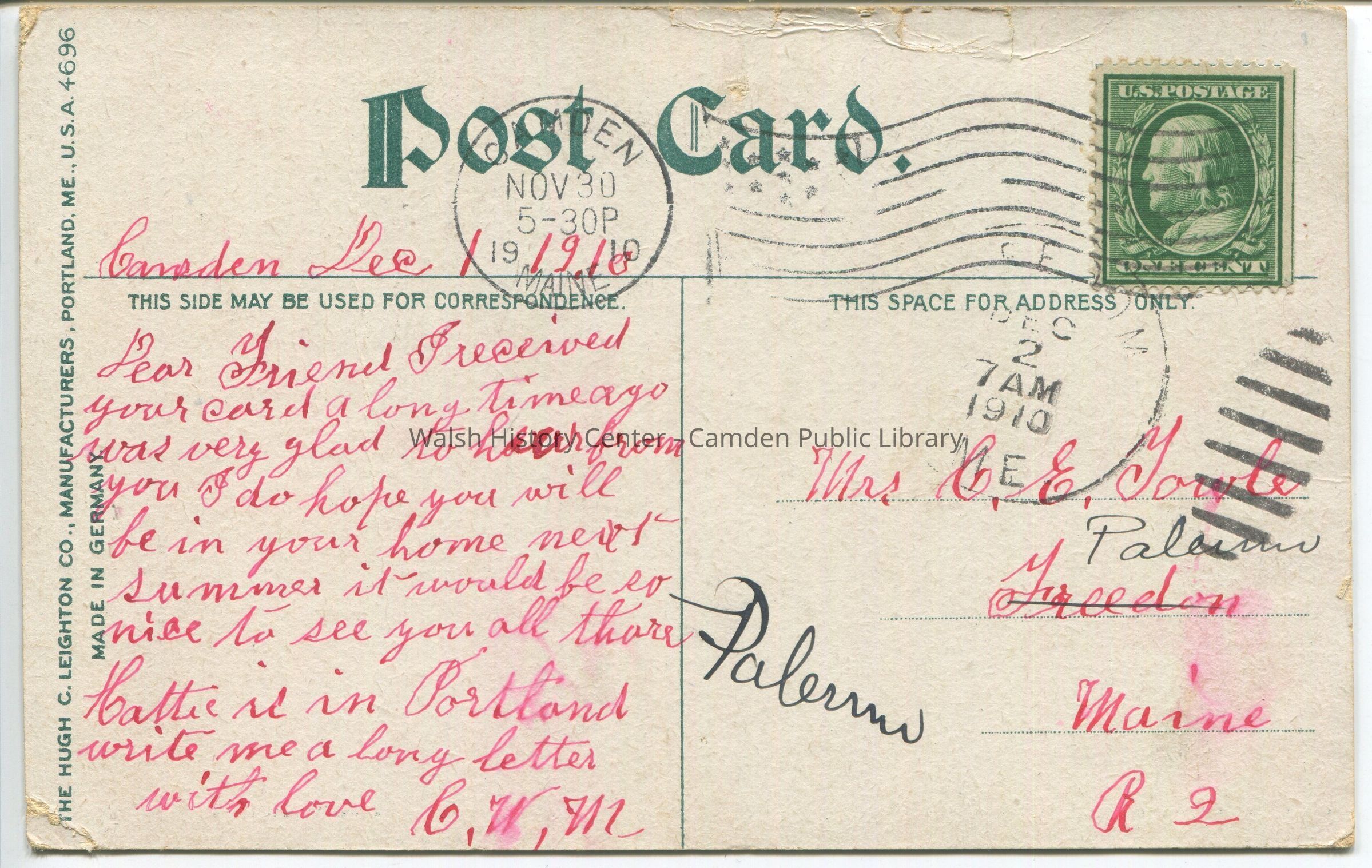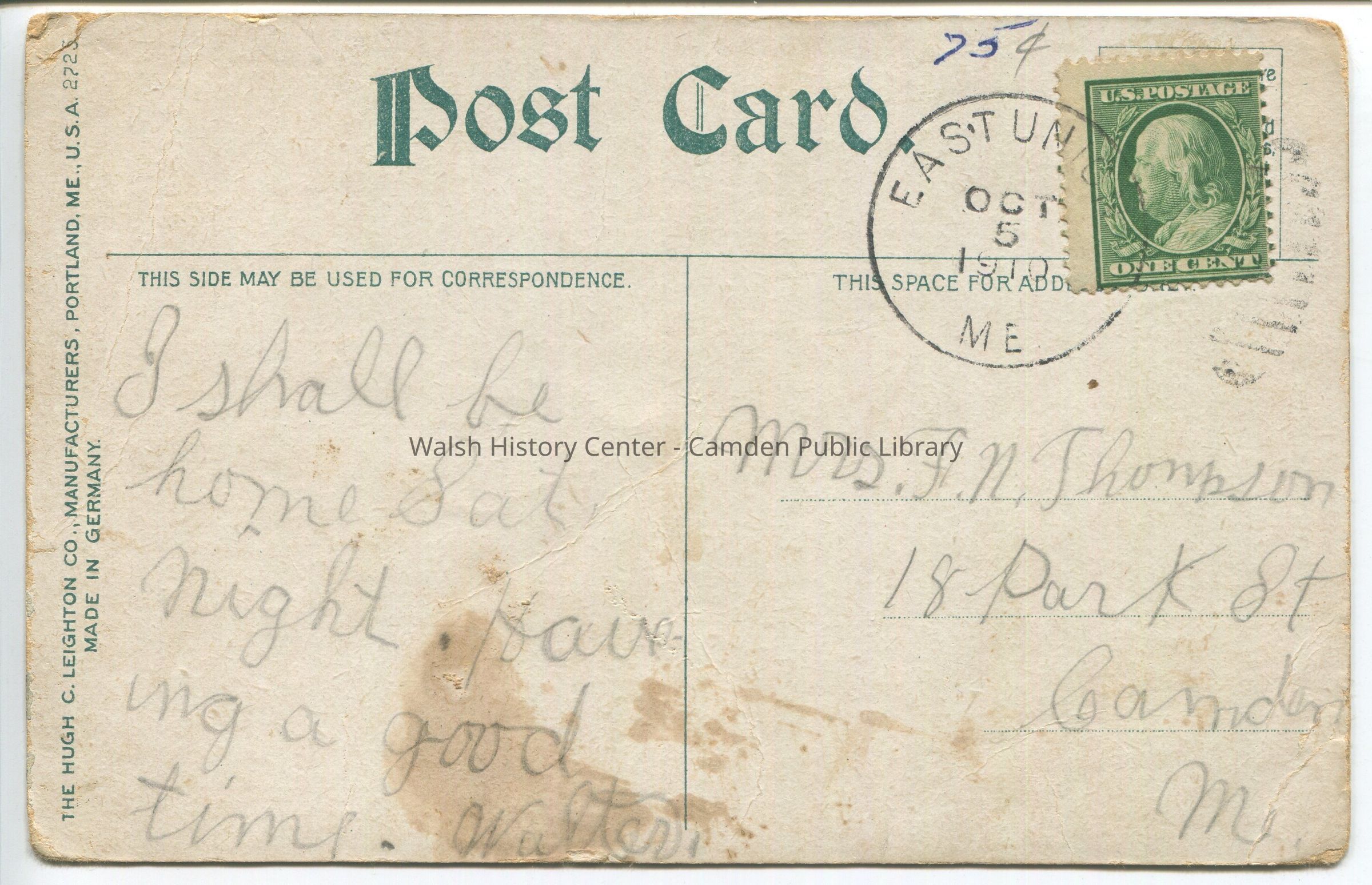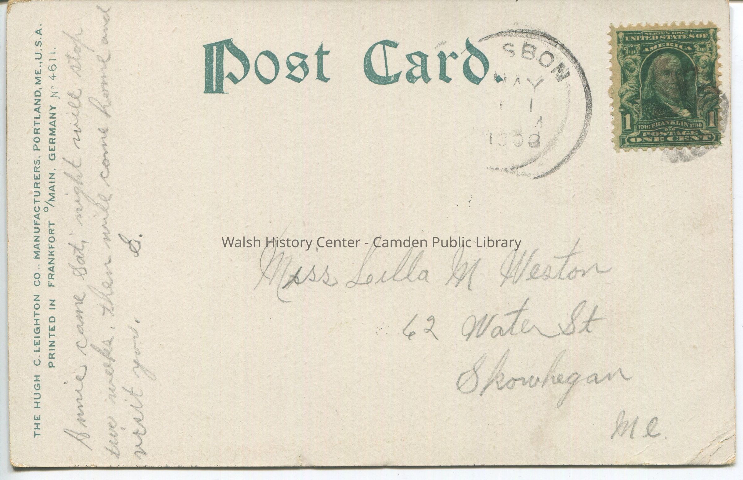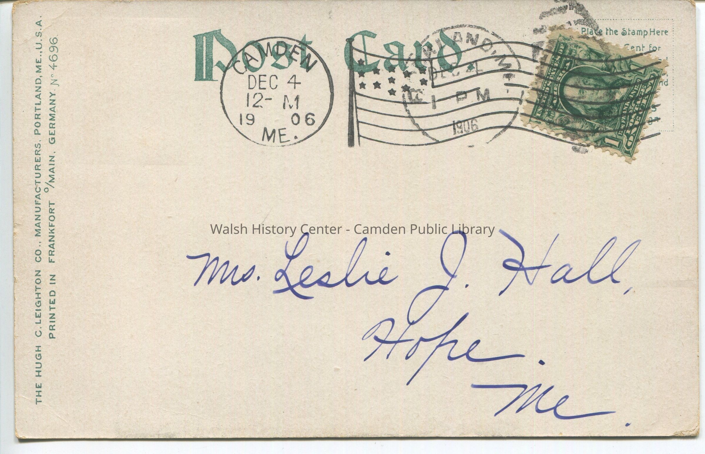Postcards were loaned for scanning and returned.Collection