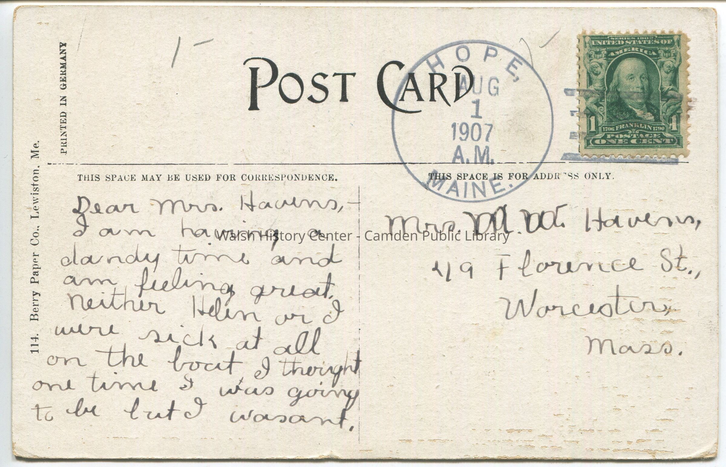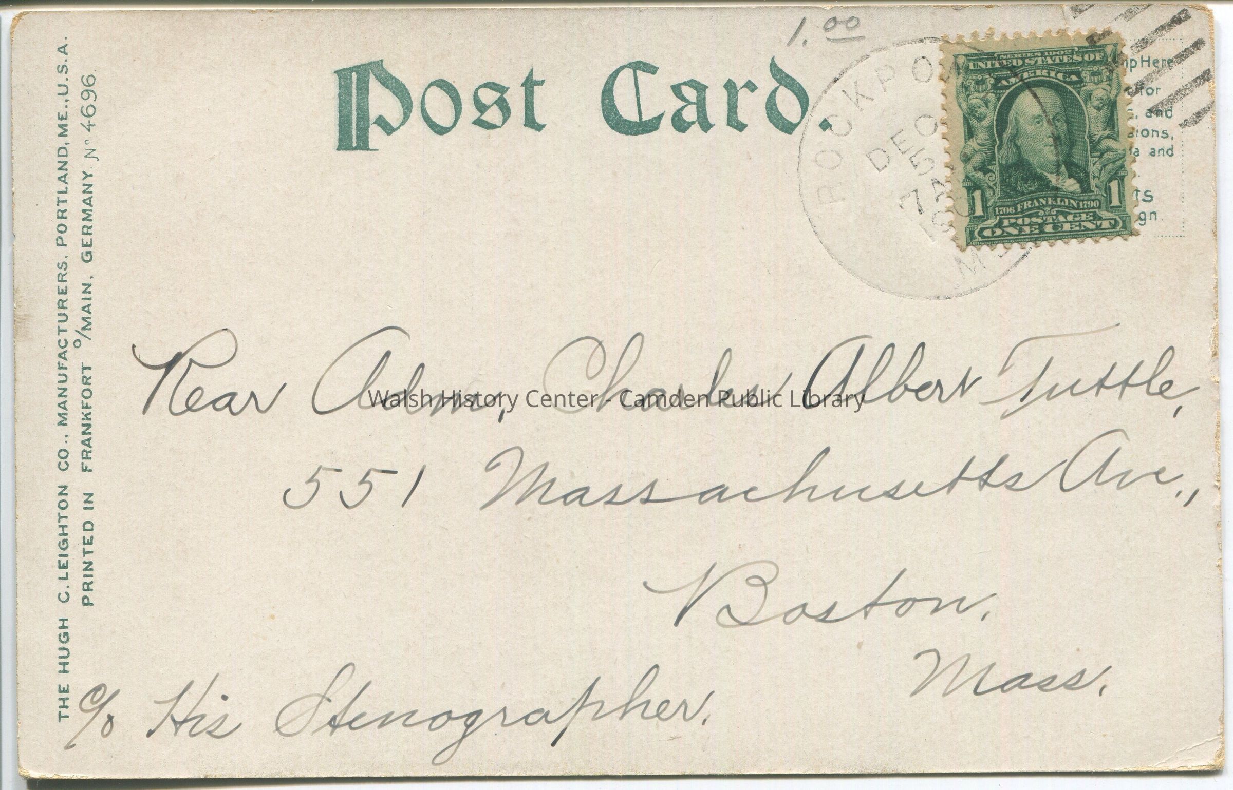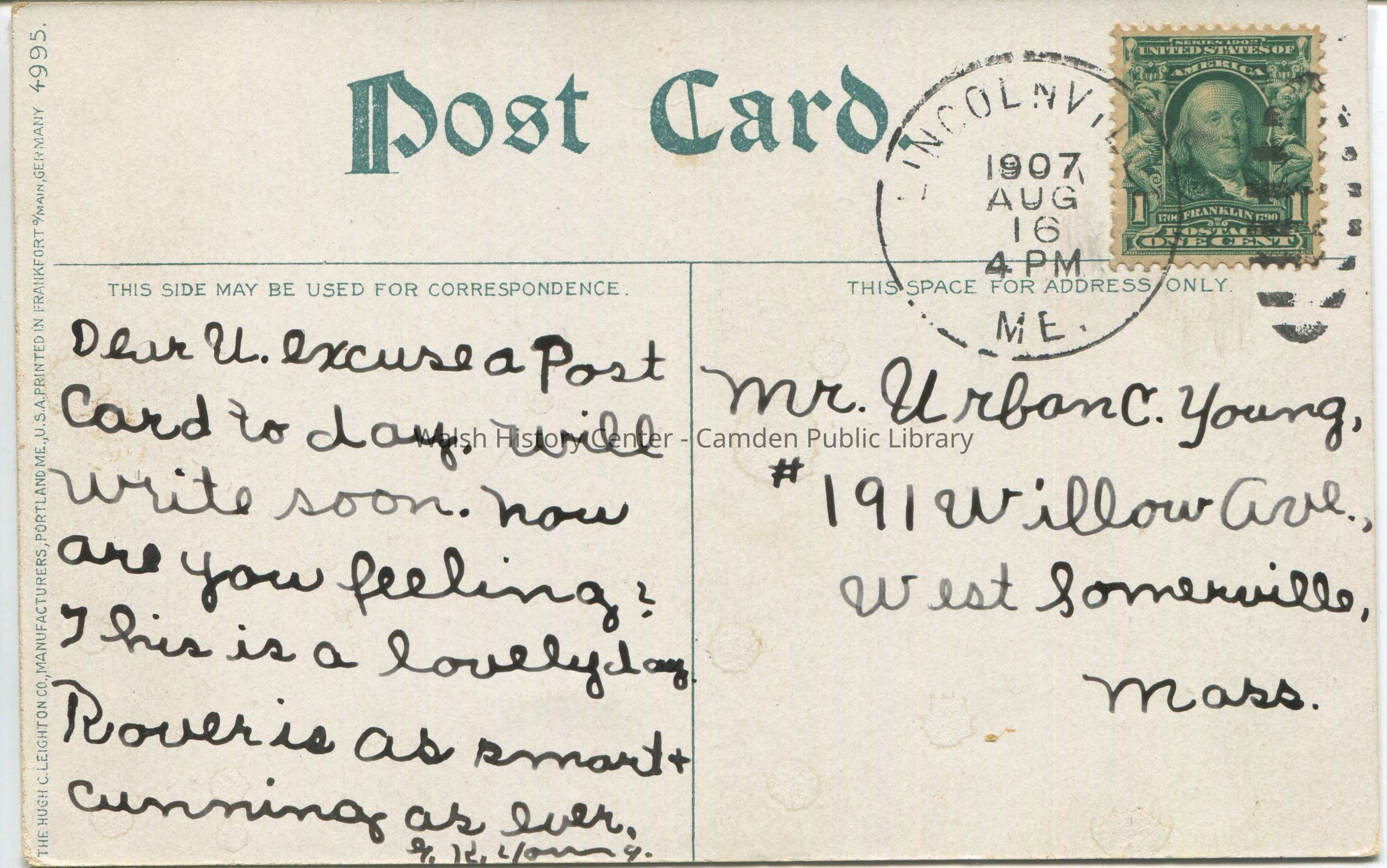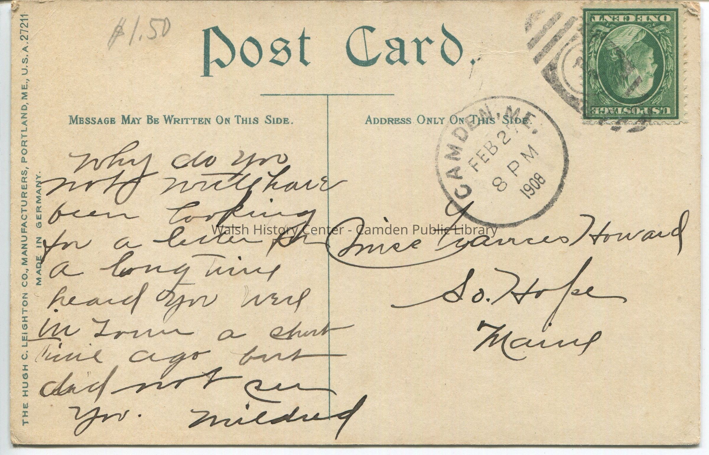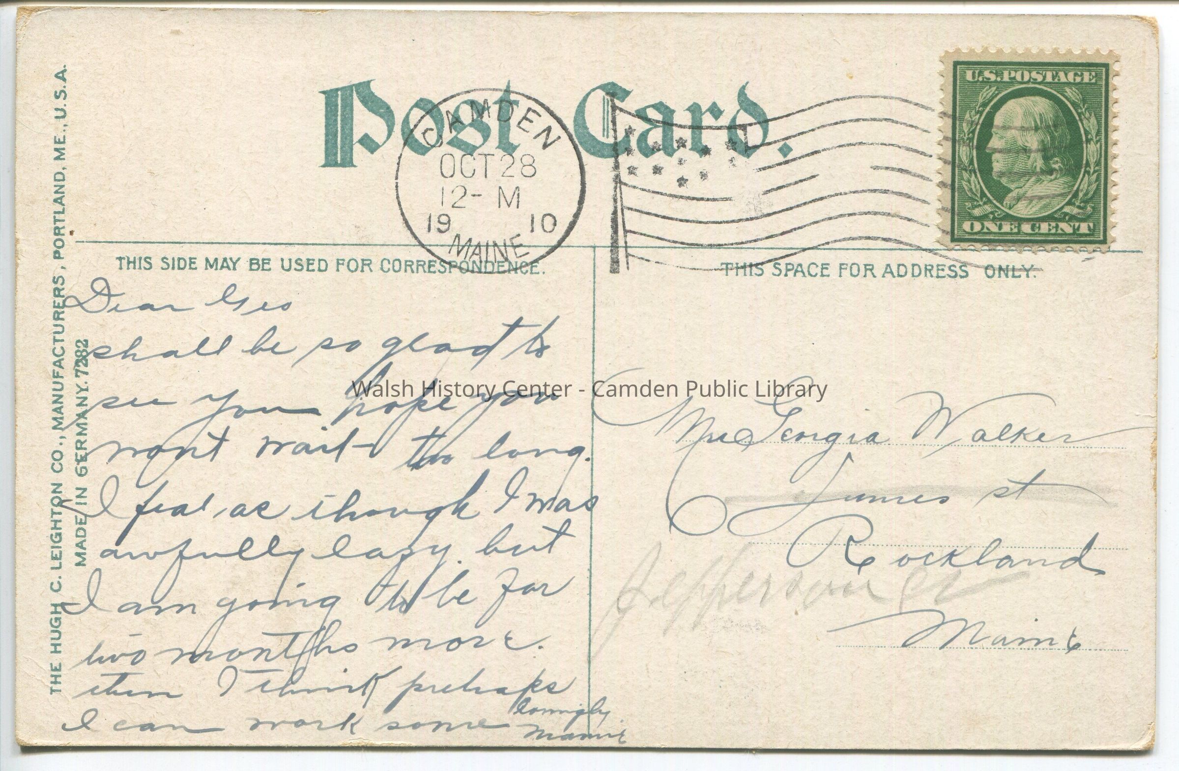 Postcards were loaned for scanning and returned.Collection