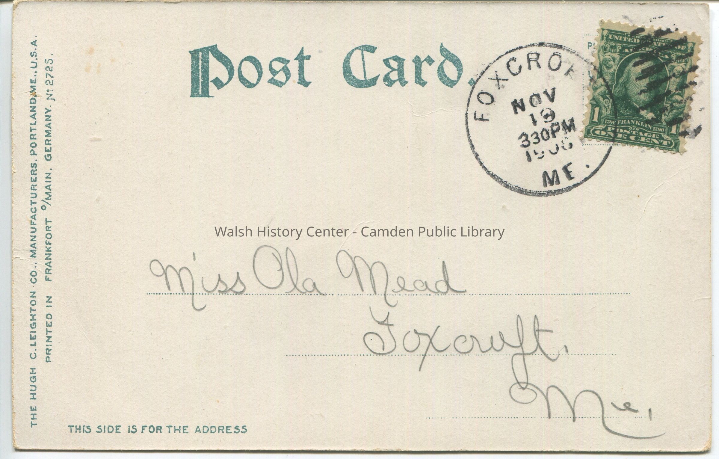 Bowley Postcard CollectionCataloged By