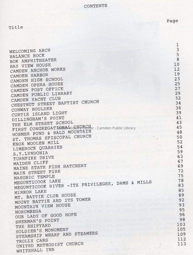 Camden, MaineOther Names and Numbers