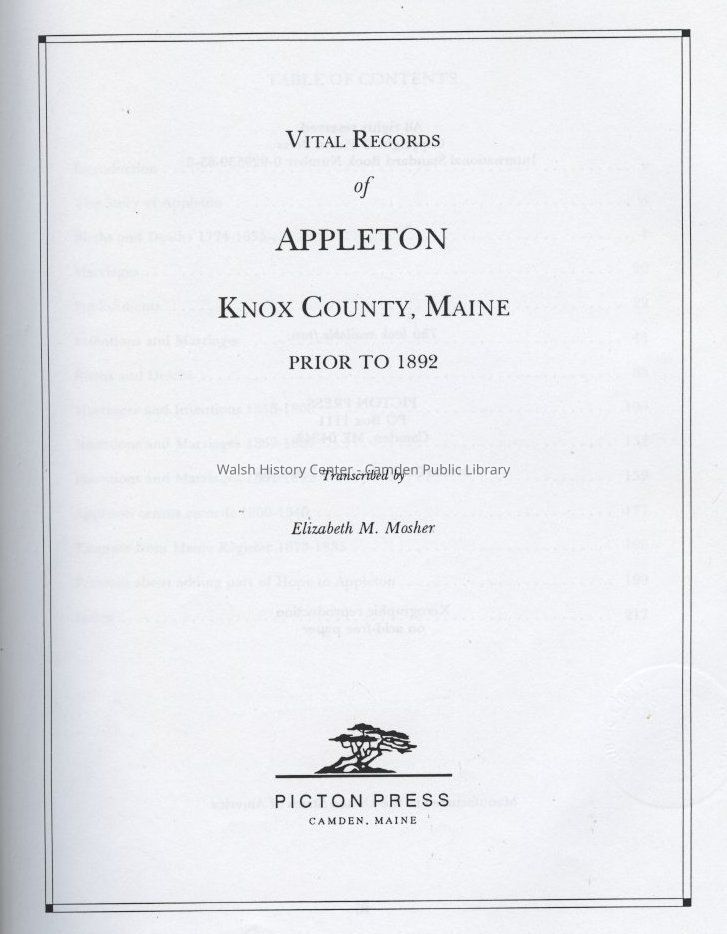 Appleton, Maine, Deaths, Genealogy, Marriages, Vital RecordsOther Names and Numbers
