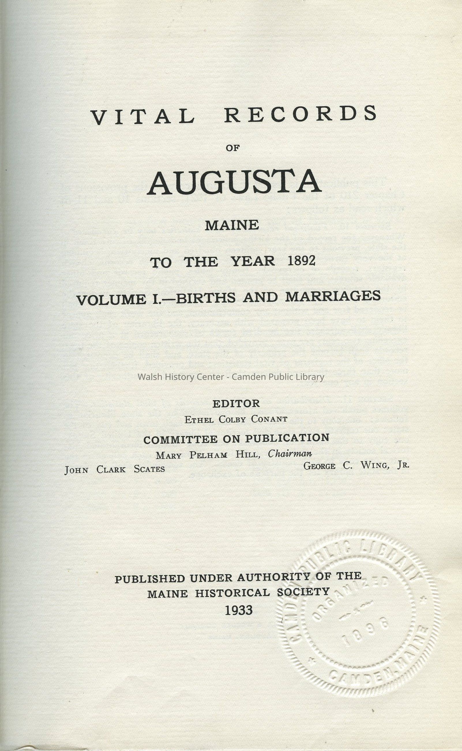 Vital Records of Augusta, Maine to the year 1892.Entry/Object ID