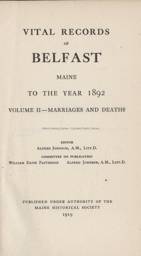 Belfast, Maine, Maine Historical Society, Deaths, Genealogy, Marriages, Vital RecordsOther Names and Numbers