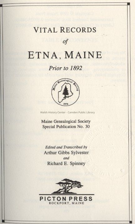 Vital Records of Etna, Maine prior to 1892Entry/Object ID