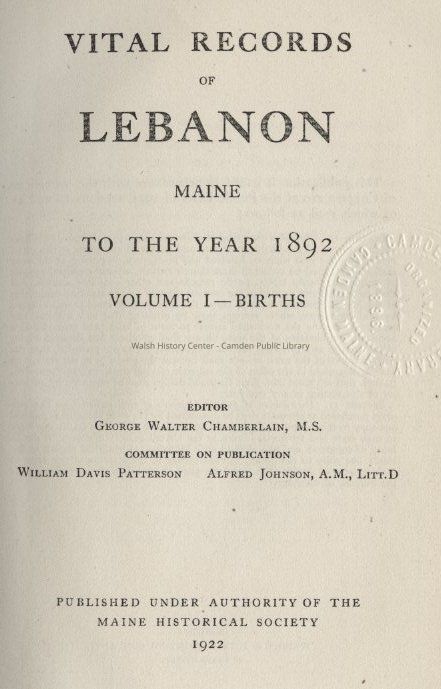 Lebanon, Maine, Genealogy, Vital RecordsOther Names and Numbers