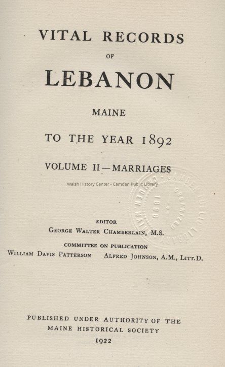 Vital Records of Lebanon Maine to the Year 1892. Volume 2 - Marriages.Entry/Object ID