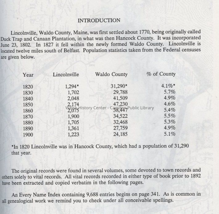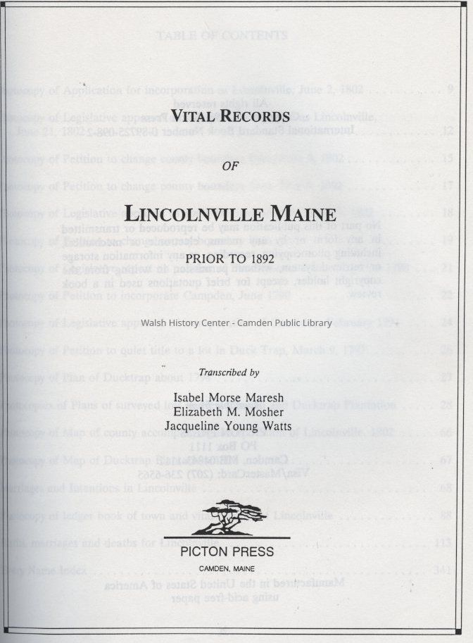 Transcription of vital records of Lincolnville, Maine prior to 1892. Includes maps and photocopied original records.