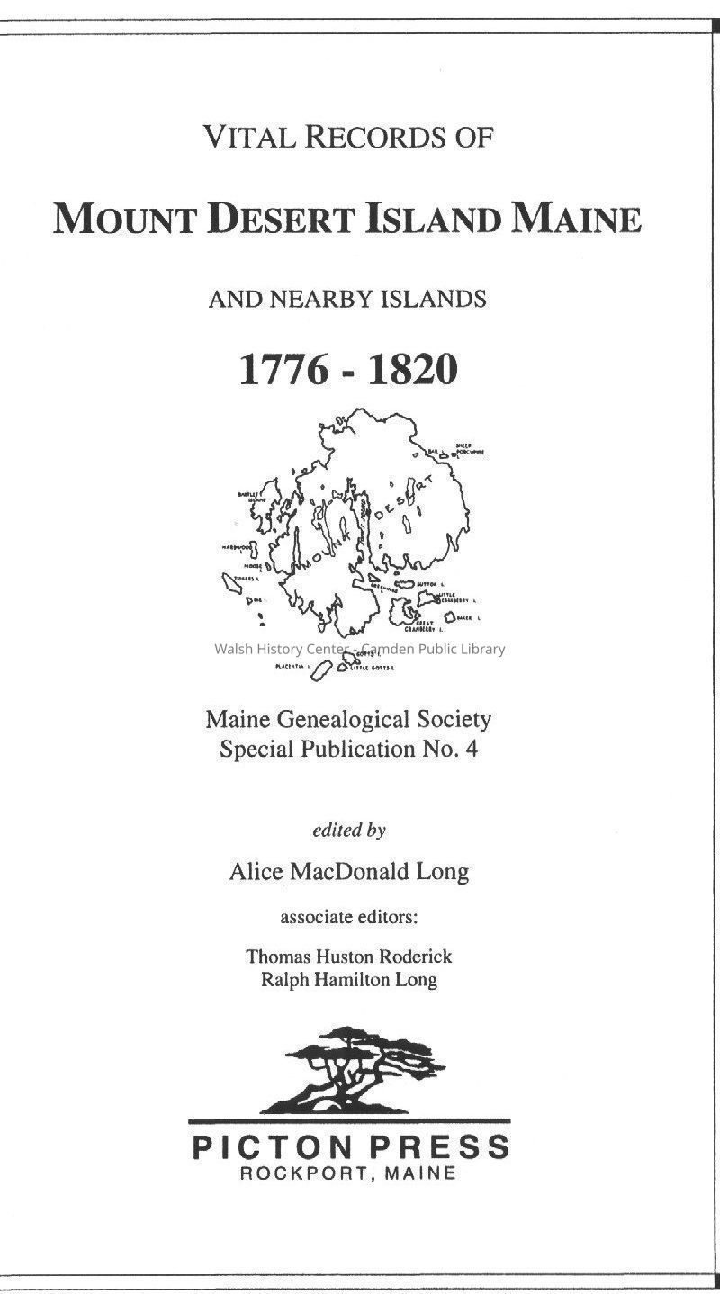 Vital Records of Mount Desert Island Maine 1776-1820Entry/Object ID