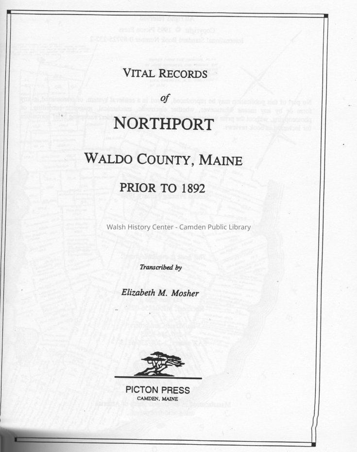 Vital Records of Northport, Waldo County, Maine prior to 1892.Entry/Object ID
