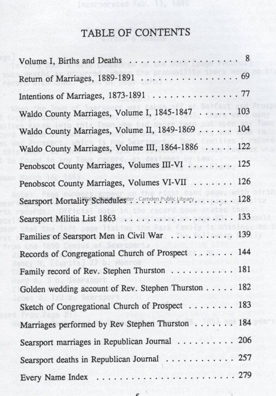 Maine, Penobscot County, Searsport, Waldo County, Deaths, Genealogy, Marriages, Vital RecordsOther Names and Numbers