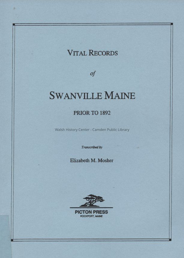 Swanville, Waldo County, Swan Plantation, Registers of Births, GenealogyOther Names and Numbers