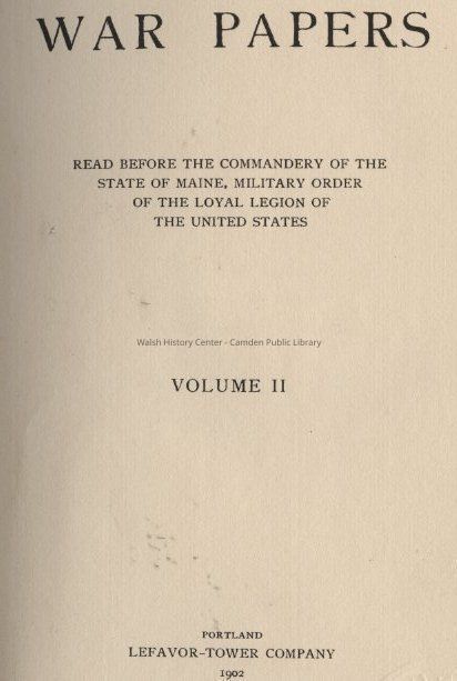 Read before the commandery of the State of Maine, Military Order of the Loyal Legion of the United StatesDescription