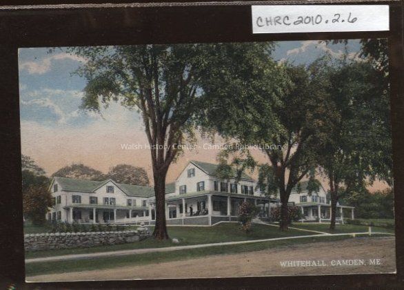 Colored postcard of Whitehall Inn on High Street in Camden, Maine.Collection