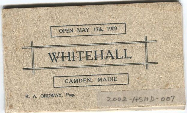 3.5 x 6 " promotional booklet for Whitehall Inn on High Street in Camden, Maine.Collection