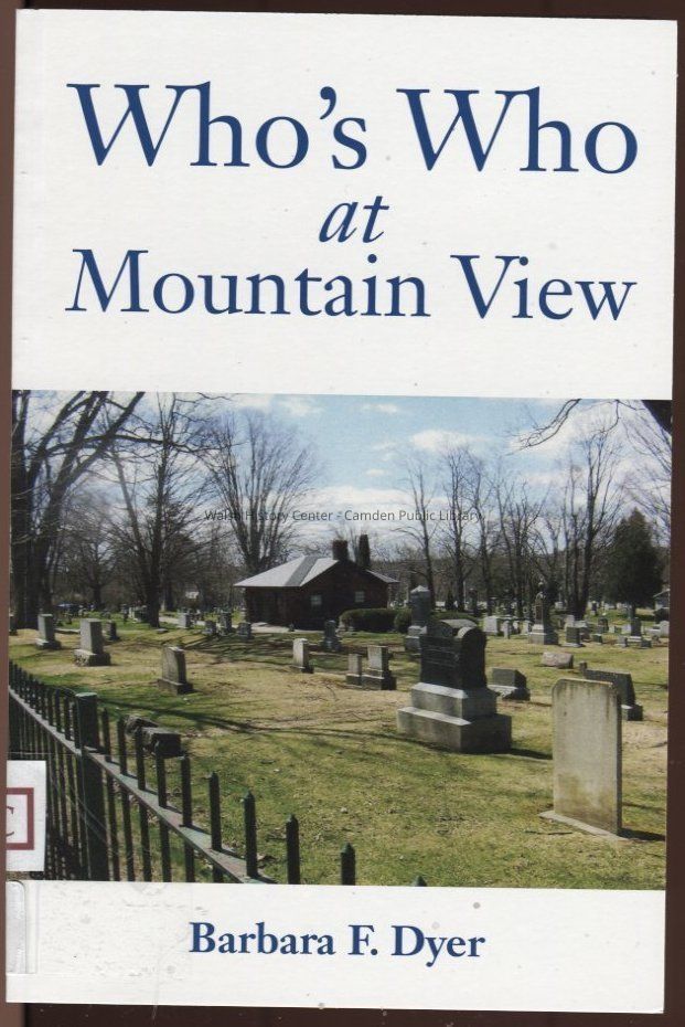 Copy of her latest book entitled "Who's Who at Mountain View, " a selection of articles about the history of Mountain View Cemetery and the notable people buried there. The cemetery was established in 1806 and is located on Mountain Street in Camden, Maine.