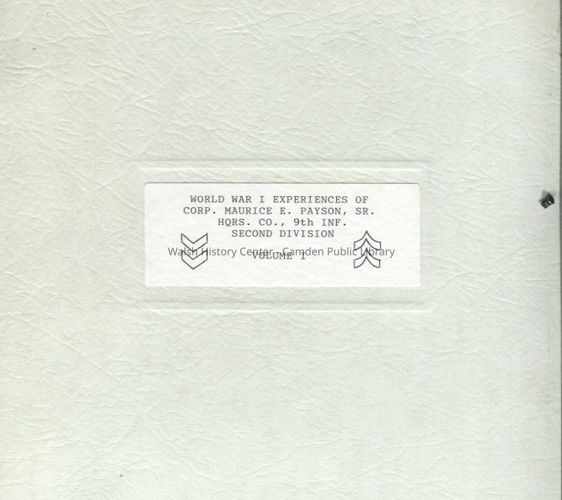 World War I Experiences of Corp. Maurice E. Payson, Sr., HQRS. Co., 9th Inf. Second Division, Volume IEntry/Object ID