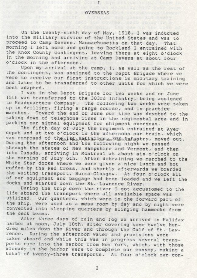 Two volume memoir of the World War I Experiences of Corp. Maurice E. Payson, Sr., HQRS. Co., 9th Inf. Second Division. Payson was born August 24, 1893 and died October 25, 1975. Corp. Maurice E. Payson, Sr. left for the war from Camden in May of 1918.