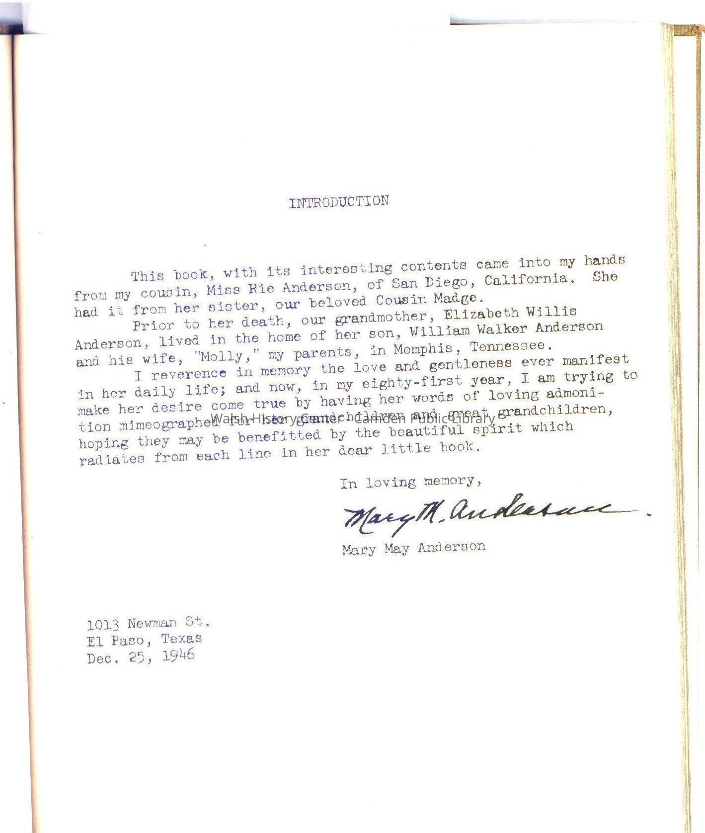Anderson, Elizabeth Willis Gloster