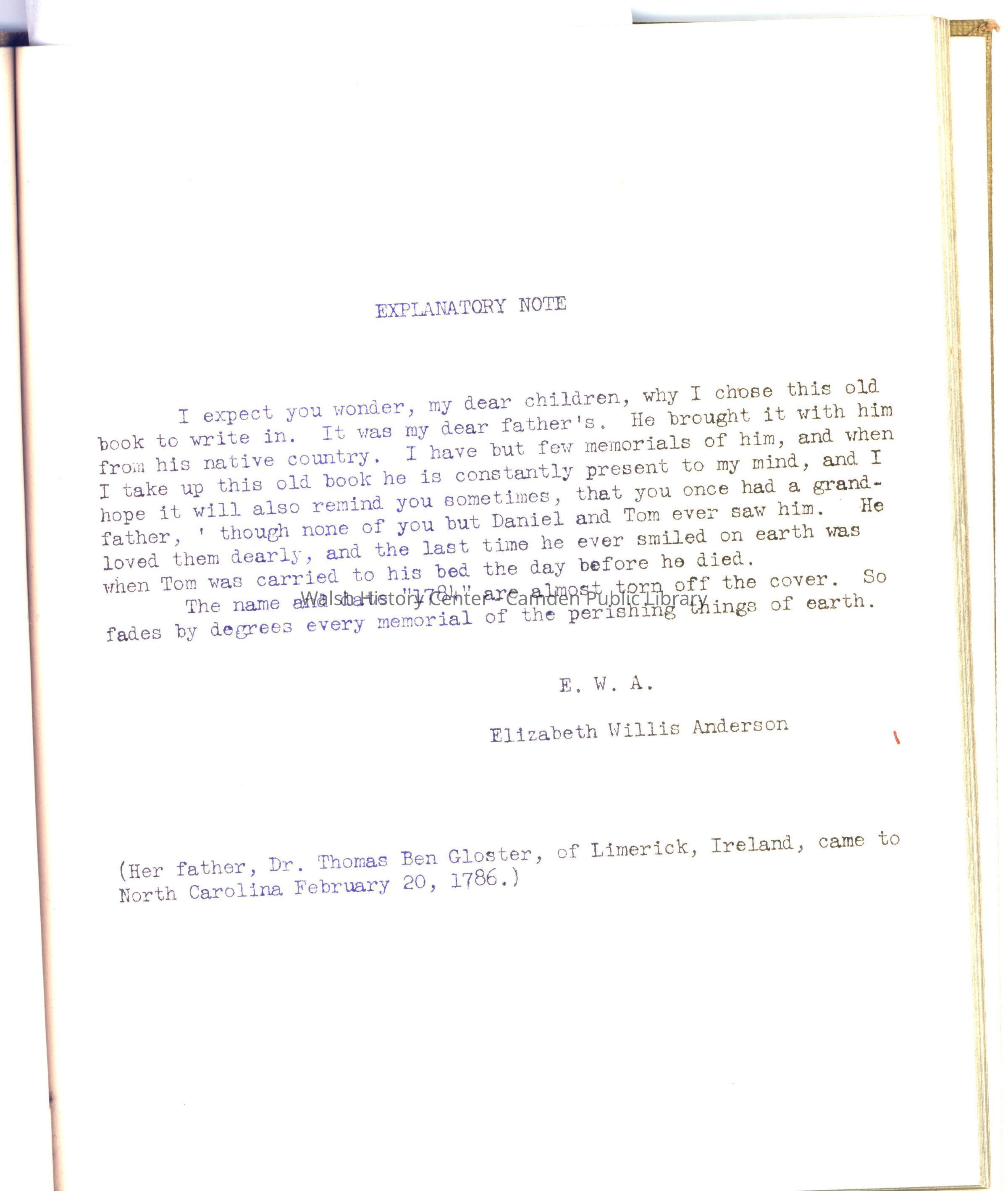 Reason for Deaccession: Pertains to family in Warrenton, NC. Contacted the Warren County Memorial Library in Warrenton, NC and they would like it as they have other materials on this family.General Notes