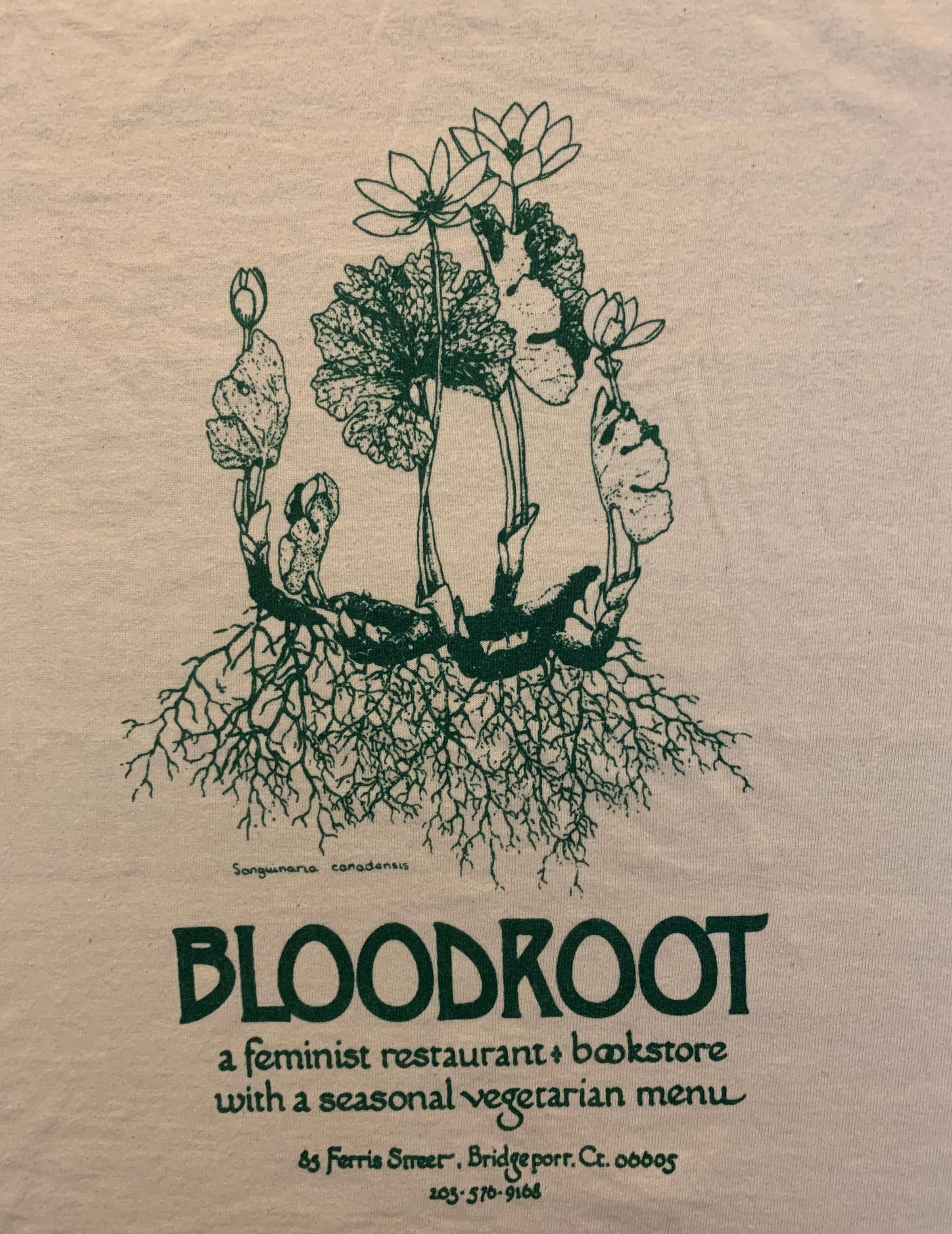 Drawn image of Sanguinaria Canadensis, created to promote Bloodroot, located in Bridgeport CT, a feminist restaurant and bookstore with seasonal vegetarian menu.Context