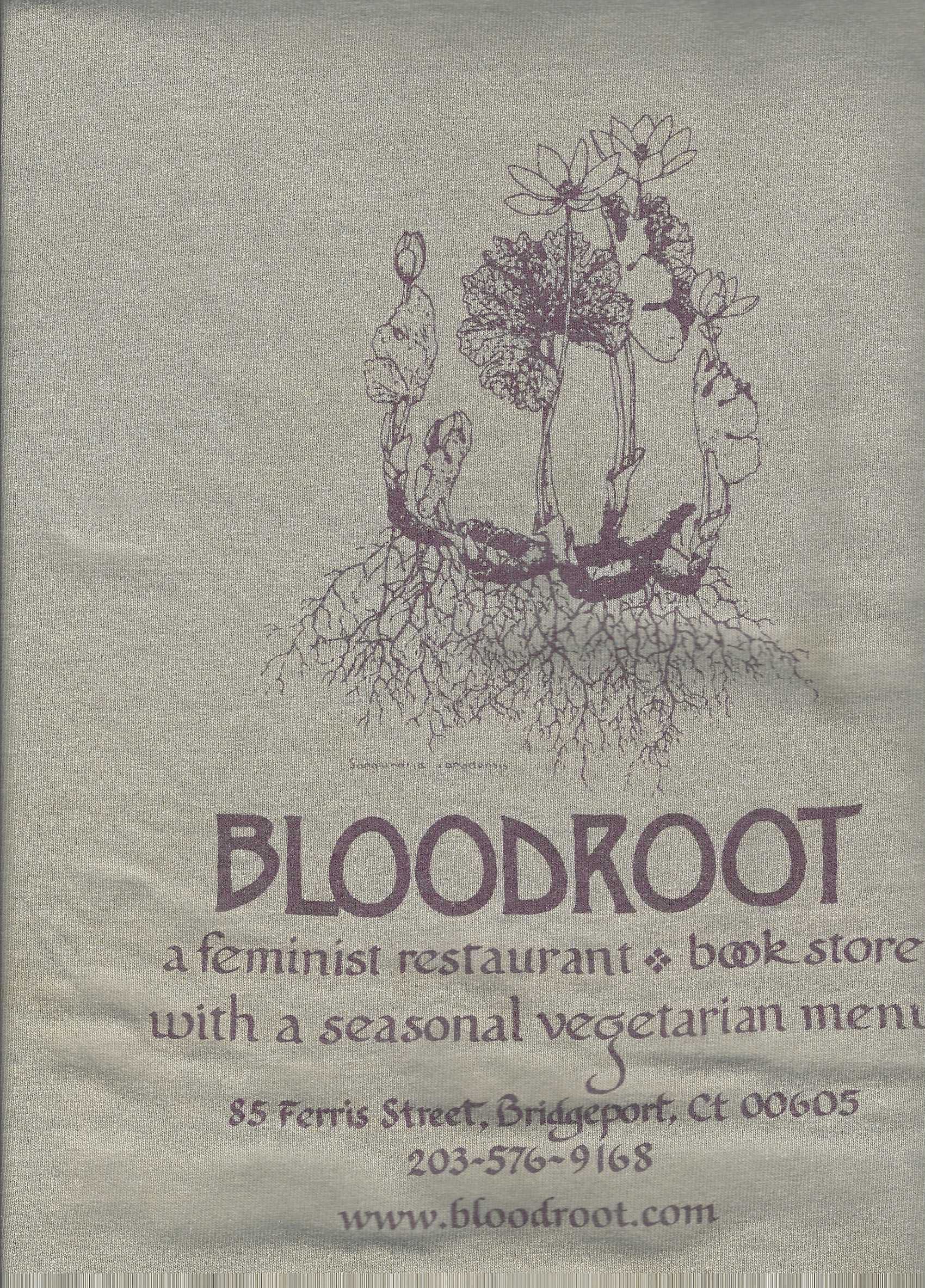 Drawn image of Sanguinaria Canadensis- Bloodroot, a feminist restaurant + bookstore with a seasonal vegetarian menu.Use