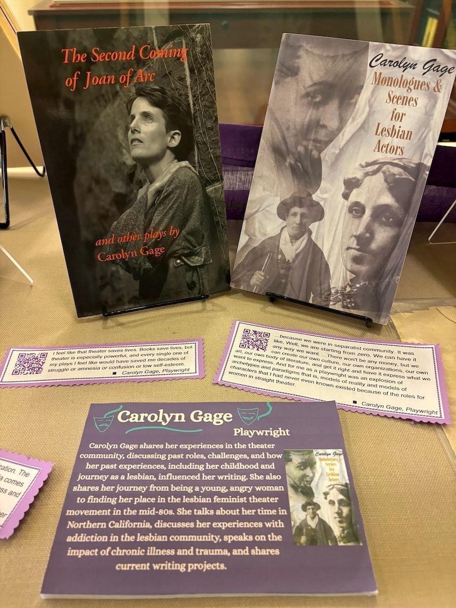 Carolyn Gage has been one of the few premier Lesbian playwrights and actors of the late 20th and early 21st century. She has authored 12 books and more than 38 plays, including musicals, one-acts, one-woman shows, adaptations, and dramas. She tours and gives lectures on Lesbian culture and herstory. She has also been well-known for her productions of The Lesbian Tent Revival. Carolyn currently lives in Maine.Category