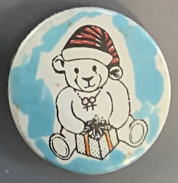 Drawing of bear with Lesbian double women’s symbol necklace – and xmas gift and santa hatMade/Created
