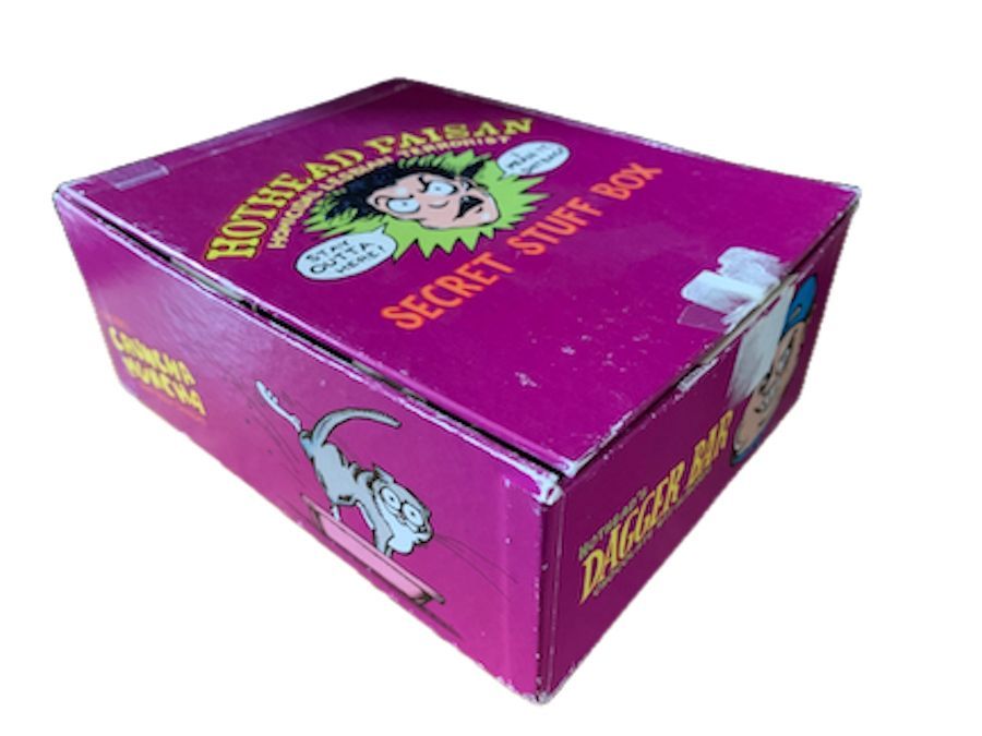 • Hothead Paisan Secret Stuff Box – the boxes initially held candy bars. Diane sold a variety of candy bars with Hothead images on the wrappers and boxes