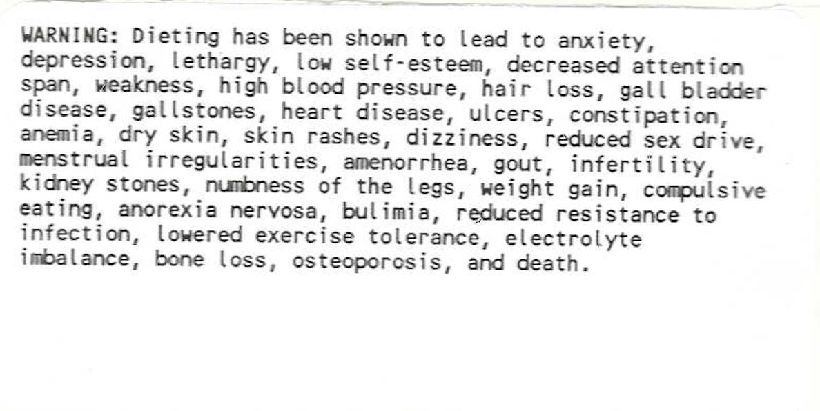 Warning label about dietingUse