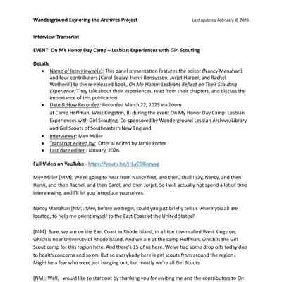 Event: On My Honor Day Camp: Lesbian Experiences with Girl ScoutingEntry/Object ID