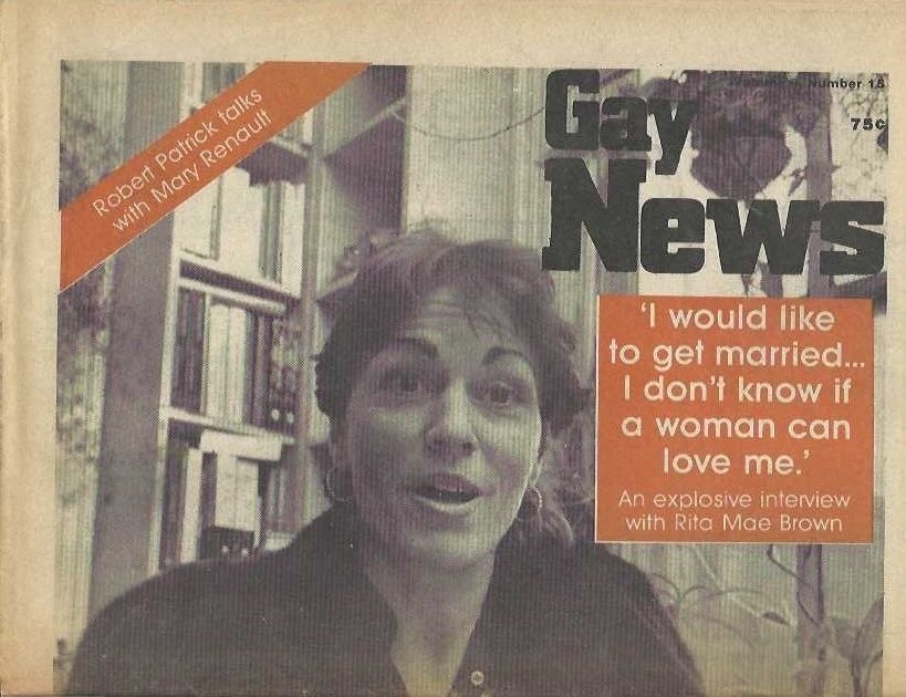 This issue contains an interview with Rita Mae Brown.Context