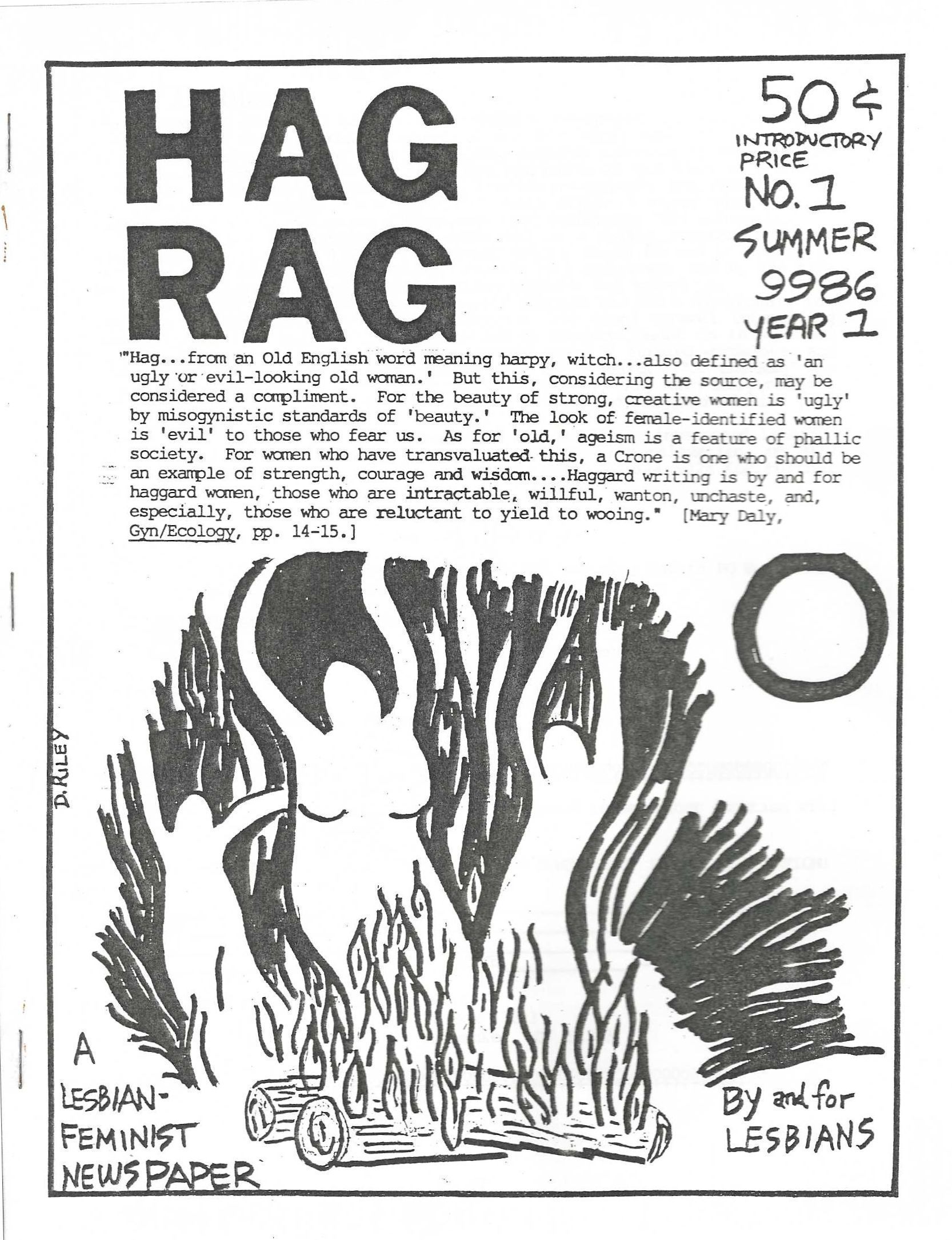 "Hag Rag" was a feminist-Lesbian periodical by and for Lesbians that discussed topics in local and nationwide Lesbian/Gay communities. It focused on news and non-fiction writing,including political analysis & commentary, with pertinent submissions welcomed.