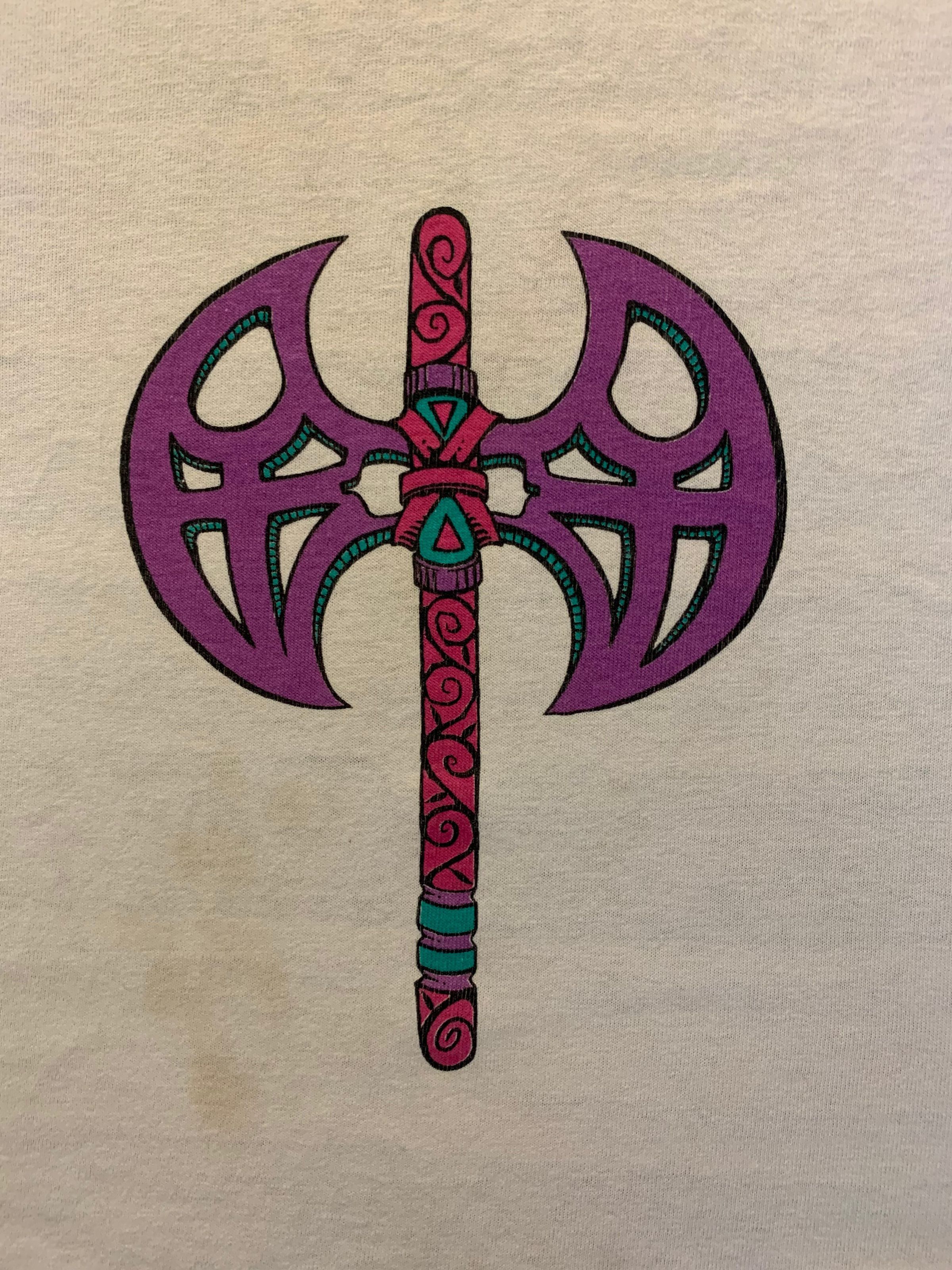 Colorful labrys with women's symbols in blades.Clothing/Dress/Costume Details